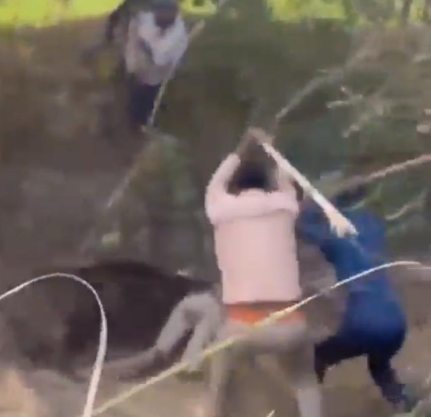 北方邦野猪袭击森林官员视频疯传 一段视频显示,在北方邦巴道恩县乌贾尼警察局辖区内的锡尔索利村,一名森林官员遭到野猪袭击。这名官员名叫苏巴姆·普拉塔普·辛格,他和他的团队接到农作物受损的投诉后赶到现场进行救援。当他们试图用网围住野猪时,野猪突然发起攻击,将辛格压在身下近两分钟。现场其他人员用棍棒将野猪驱赶走,最终救出了受伤的辛格。