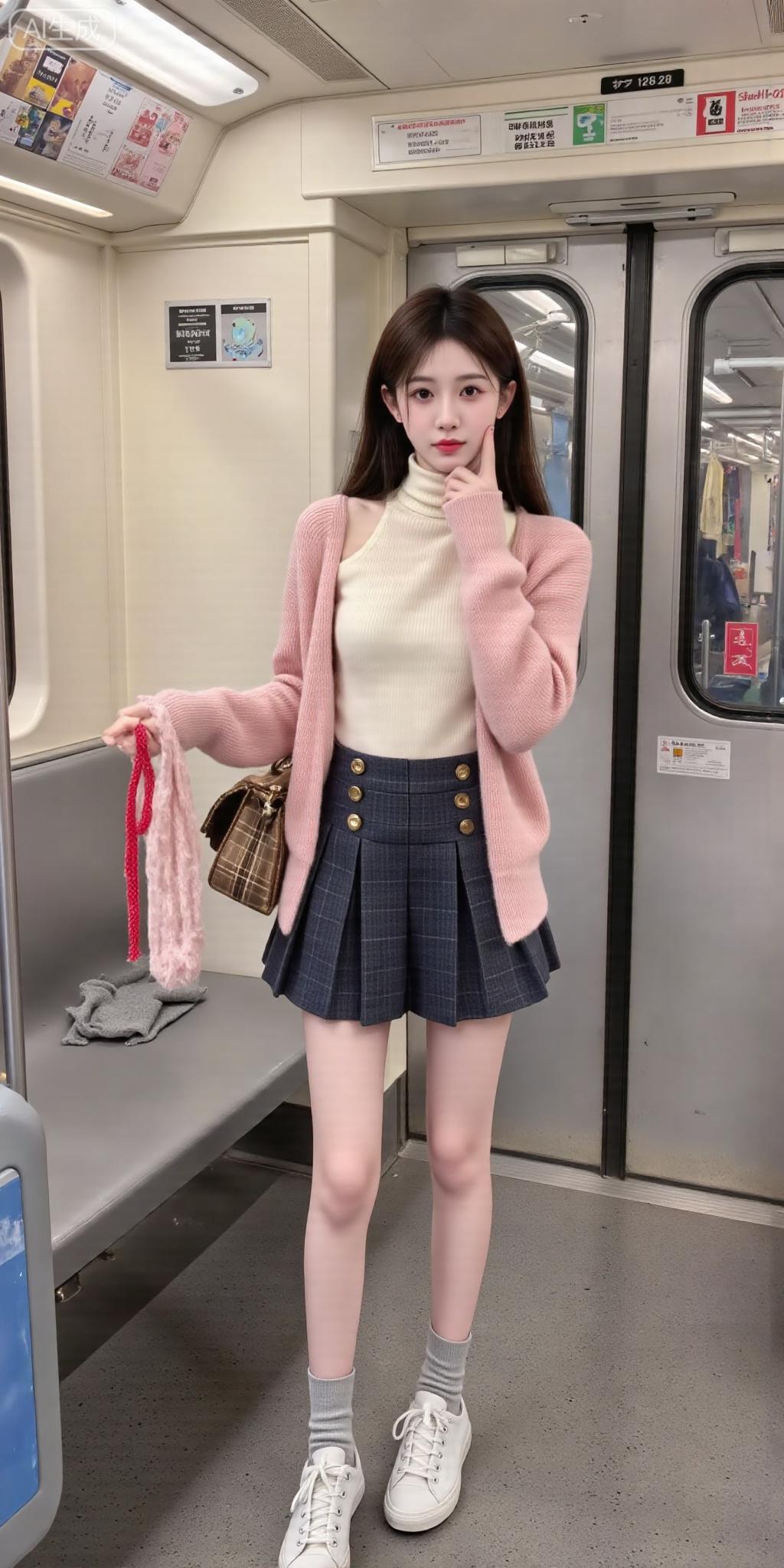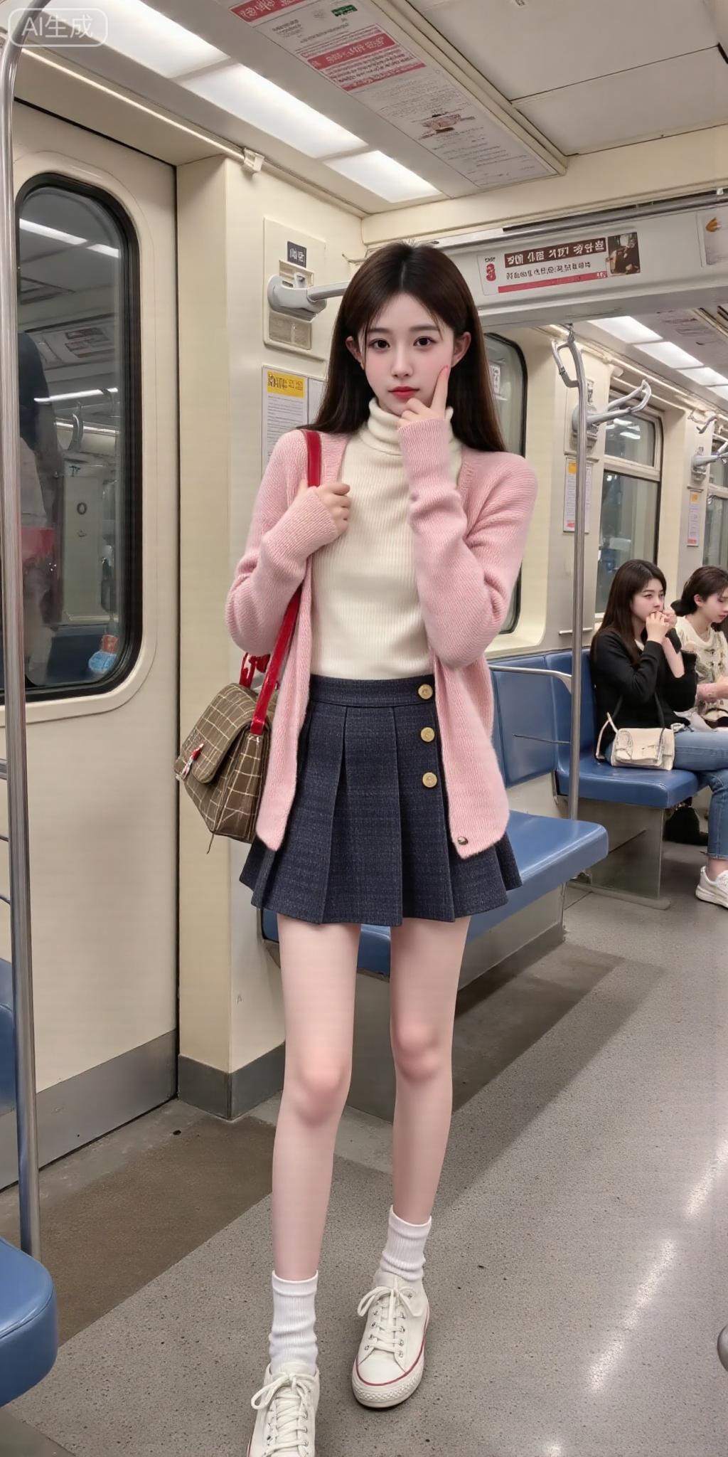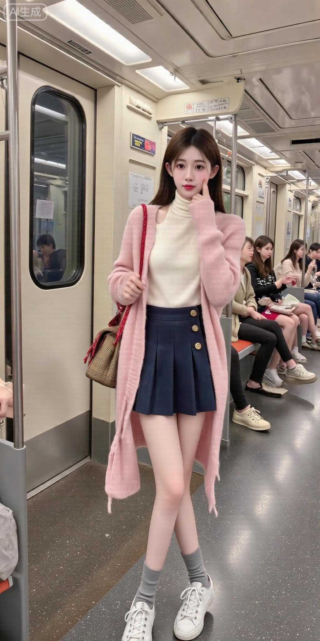 粉开衫配藏青裙,地铁里的温柔甜妹好灵动玫红色裙穿搭 粉色调穿搭