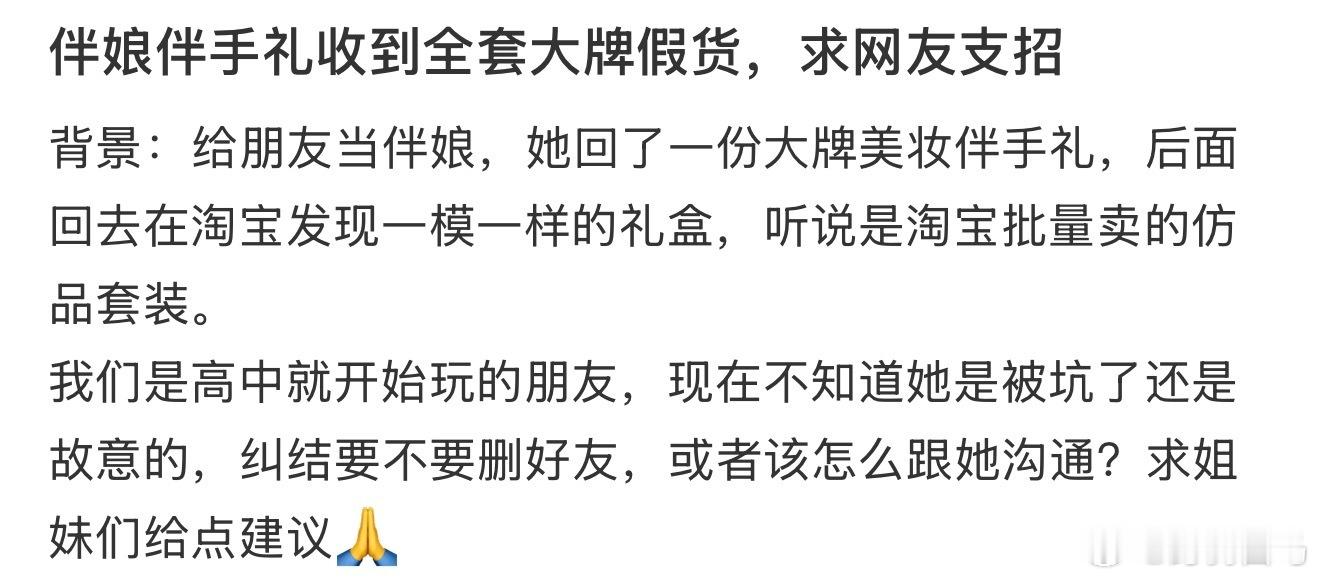 伴娘伴手礼收到全套大牌假货,求网友支招