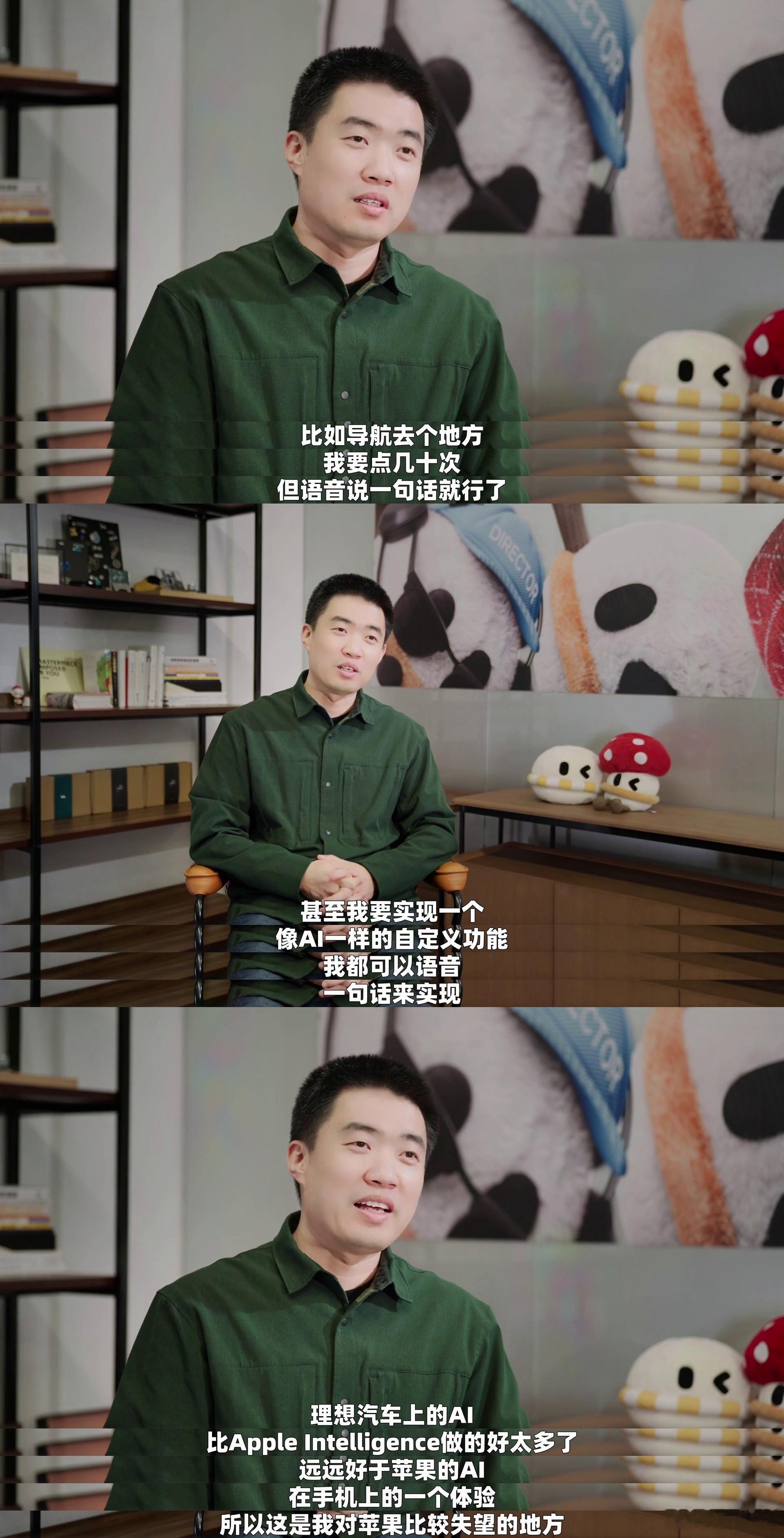 李想谈智能座舱的评价标准 想哥在新的一期视频里谈到了智能座舱,理想同学是目前很好用的座舱ai,这里的不禁想起一位故人智能座舱的实际语音交互是一个高频功能,苹果手机作为交互体验的标杆,定义了多点触控的交互方式,优先保障了保障了高频功能,并且做到了克制广告,这是苹果做的好的点,但在国内使用AI(siri)真的几乎是一个比较差的体验,而且也不常用吧~一个好的智能座舱一定是大家都爱用的,且交流流畅,语言拟人充满风趣,这是也是理想同学受欢迎的原因~座舱和AD也有着藕断丝连的关系,是相辅相成的,两者都要不断迭代,比如现在随着技术的迭代,未来的L3,L4基础下,座舱需要做一些改变,包括但不限于座椅,交互屏幕,方向盘等等,随着技术的迭代,座舱也要迭代,是必然的以后车会主动找你开门、根据乘客情况调座椅、甚至主动接孩子上学,这是汽车具身智能的趋势,挺好的可以减少精力虽损耗李想称理想车机的AI能力超过苹果