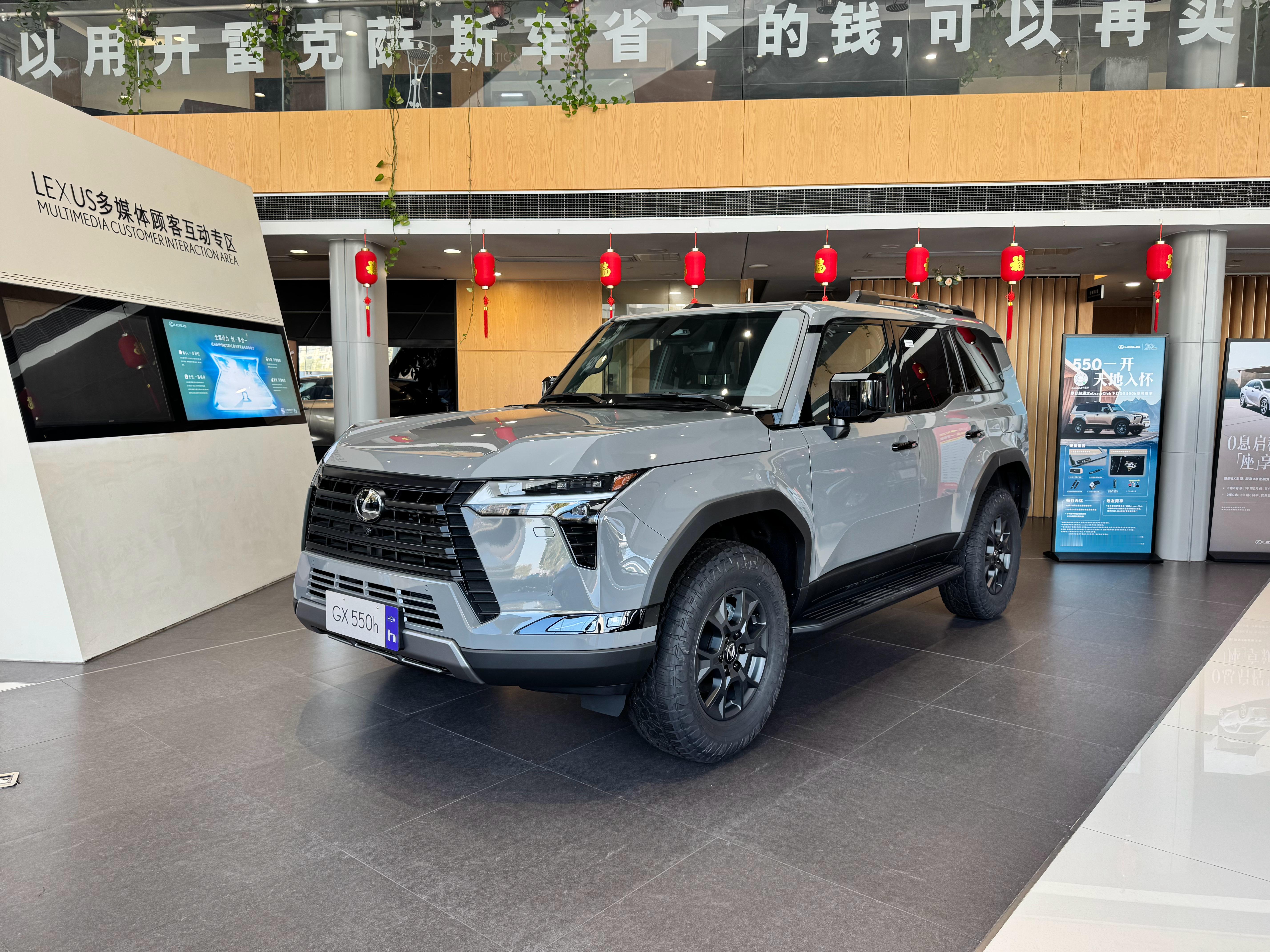 雷克萨斯GX550h!价格从77.8万到89.98万,采用的是2.4T四缸涡轮增压发动机+单电机动力总成,官方百公里加速时间为8.5秒!全时四驱带托森差速器,标配AT越野胎,相较于老大哥LX而言,三围尺寸小了不少,所以气场并没有那么强!豪车超跑 合肥
