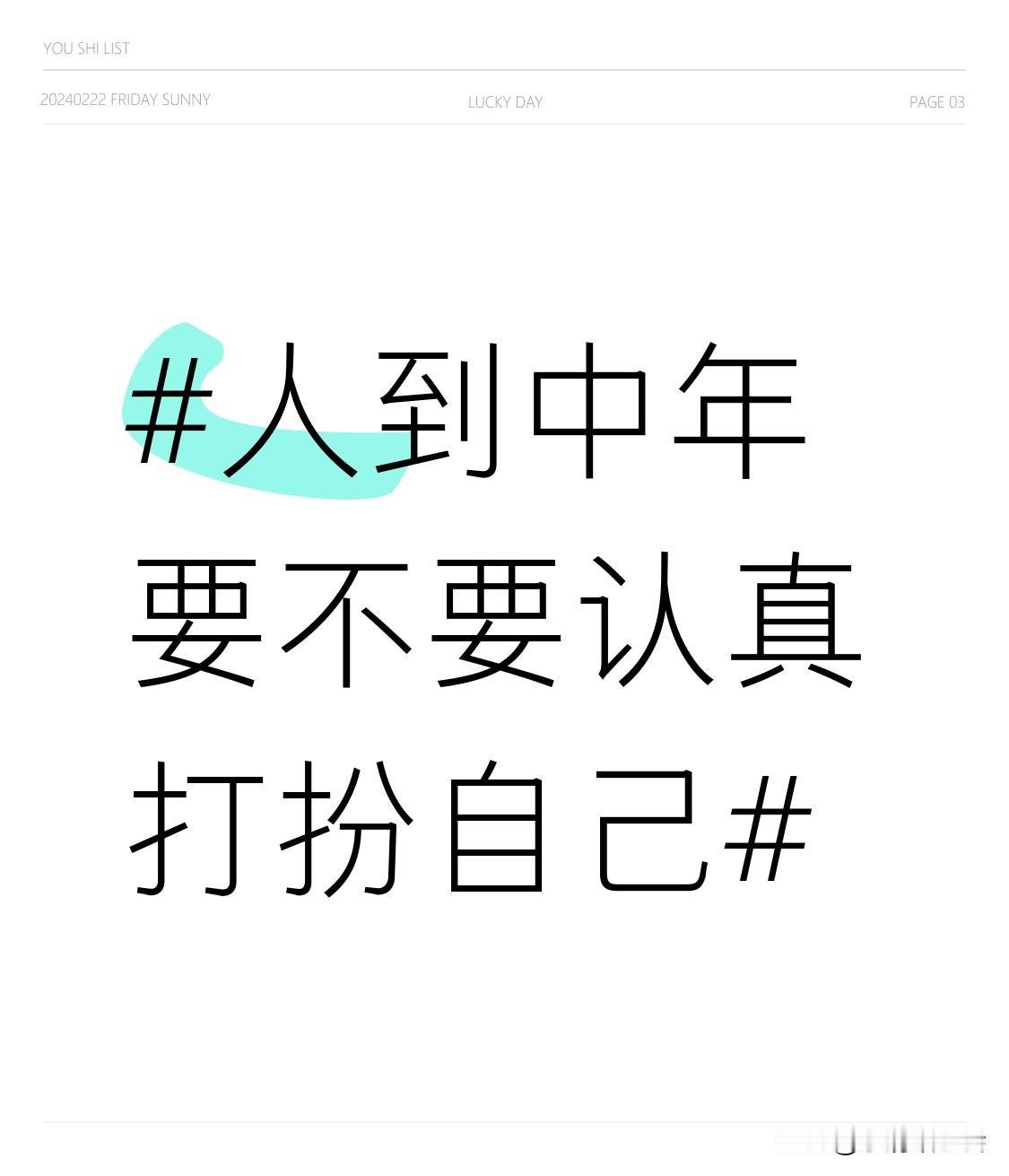 人到中年,必须认真打扮自己!打扮可不是为了取悦别人,纯粹是让自己开心。想象一下,当你穿着得体、干净整洁地出门,心情都会跟着美丽起来。 我有个中年朋友,以前不太注重打扮,整天邋里邋遢,整个人都没精神。后来开始认真收拾自己,选适合的衣服、做合适的发型,气质一下就提升了,人也自信开朗了。打扮得优雅得体,能巧妙掩盖岁月痕迹,这是热爱生活、爱自己的表现。大好时光,干嘛不让自己美美的呢?