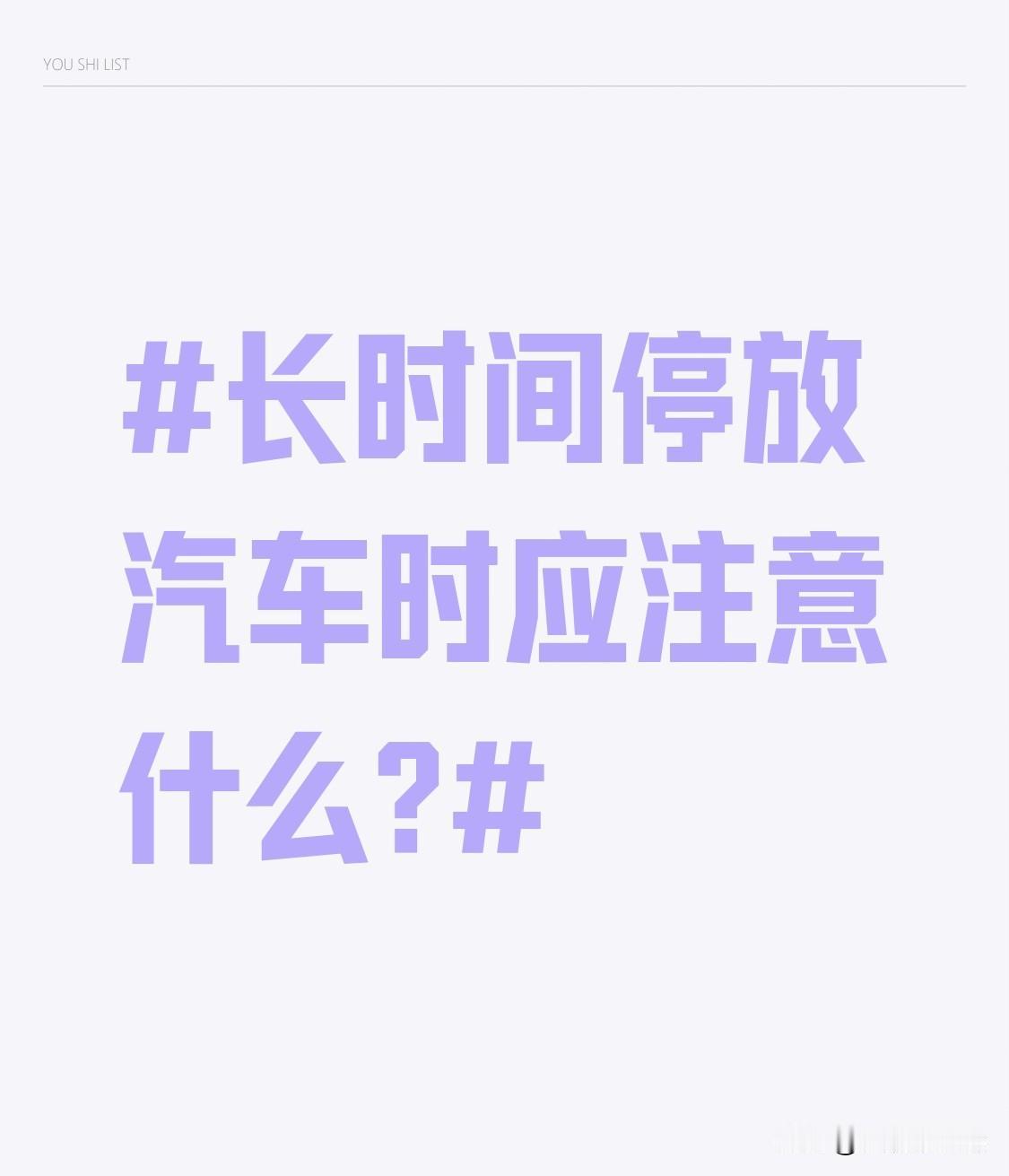 长时间停放汽车可得多留意。电瓶是重点,每隔5到7天启动车辆运行10分钟以上,或者把电瓶负极拔了,甚至拆下存放,避免没电或漏电。 停车位置也很关键,有车库最好,能防风吹日晒和落枝、树胶伤车漆,还可以盖上车衣。轮胎要保证气压充足,不然长期停放可能亏气、变形。 车辆的油液都有保质期,得留意。空调长时间停放易有异味,使用前要清洁,还应定期启动运行。有条件的话,每周启动发动机运转15至30分钟,短途行驶就更好啦,这样才能让车再次使用时状态良好。