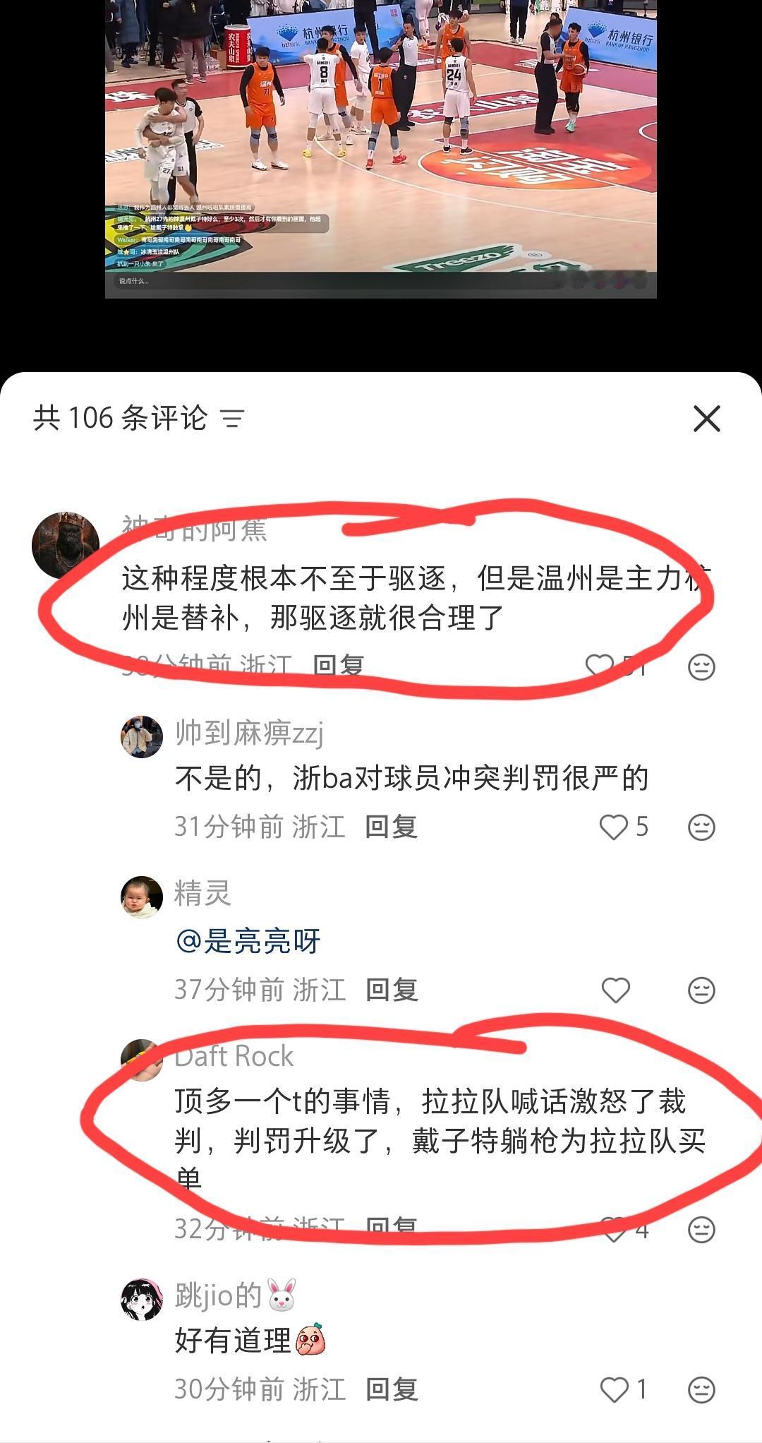 杭州vs温州这场比赛中又出现争议判罚。温州球迷表示不服:两位球员这么小的推搡动作,为什么双双被驱逐出场?而温州队是主力球员,杭州队是替补球员,太不公平了! 这一画面出现在第三节双方打的非常胶着的时候,当时温州队在拼命的追分,已经快追上来了,就出现了杭州队27号在防守过程中动作过大,把温州队27号球员带倒了,裁判没有吹罚,温州队队员起来就推了一下杭州队队员,杭州队队员也是如法炮制,也推了一下对方,最后双方因为这一过激行为,被双双驱逐离场了。 个人观点:裁判做出过重的判罚,可能也是为了比赛正常进行吧,大家看问题还是要客观,裁判这时候哪里会管你是替补还是主力啊! 大家觉得呢?