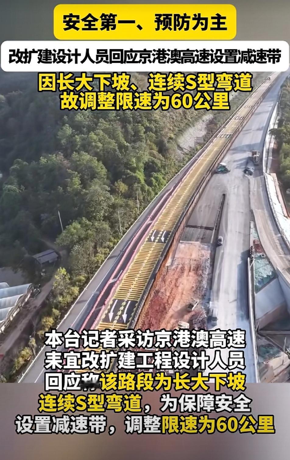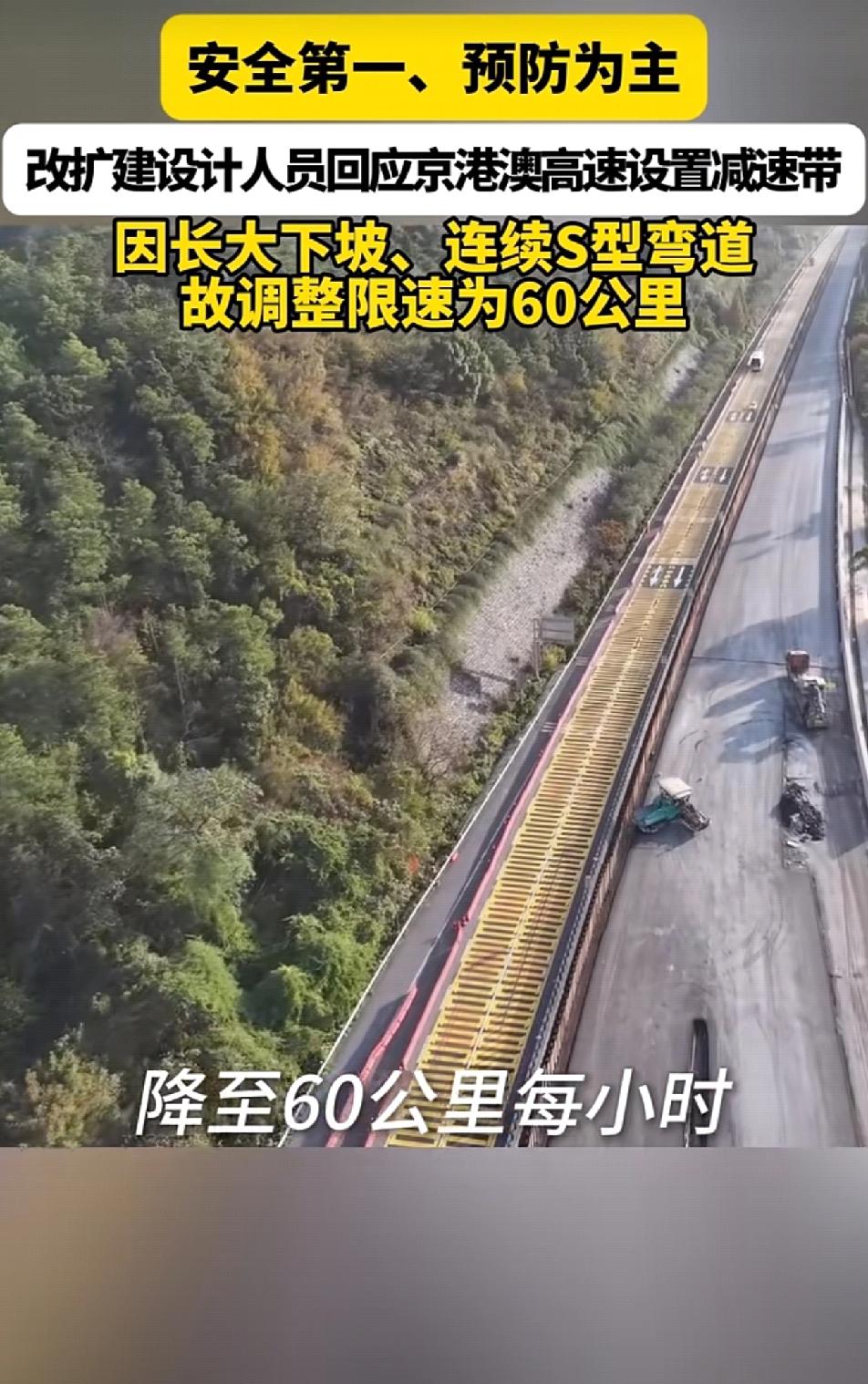 湖南高速的震荡线能把肾结石给颠下来?湖南高速 看到这个短视频的时候我也很诧异啊,确实真的线挺多的,然后特意去了解了一下,结果今天相关部门就出了相应的说明,G4京港澳改扩建工程,说白了就是施工路段加长下坡和连续弯道,这几个因素叠加在一起,再加上山区的话,事故风险非常高,所以施工单位就设置了比较密集的连续震荡线来提醒过往车辆减速。说白了都是为了安全呀! 具体信息如下:从G4京港澳高速耒宜改扩建项目设计单位了解到,近期受网友关注的路段位于K1776附近,因临近郴州北收费站、兼有长下坡与连续弯道,属事故易发区域。目前该路段正进行改扩建,南往北车辆暂转换至右幅通行。为保障安全,项目单位设置横向振荡减速标线,将车速引导至60公里/小时,并配套安装防撞桶、警示标志等设施。 施工单位正加快推进工程,计划2026年1月中旬前完成换幅施工。之后南往北车辆将改至新建左幅路面通行,后续还将通过分离式道路分流,提升行车安全与舒适度。