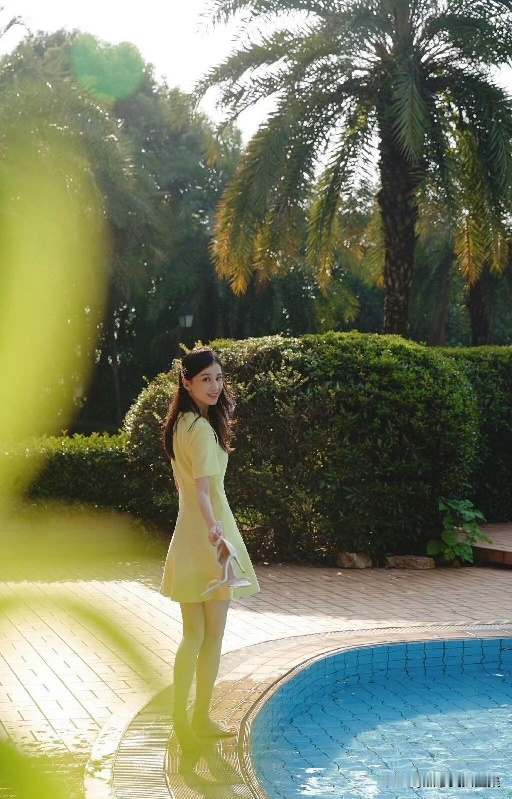 黄圣依在泳池边一袭黄裙,那温柔的模样简直绝了,一下就给咱提供了穿搭显品味的思路。