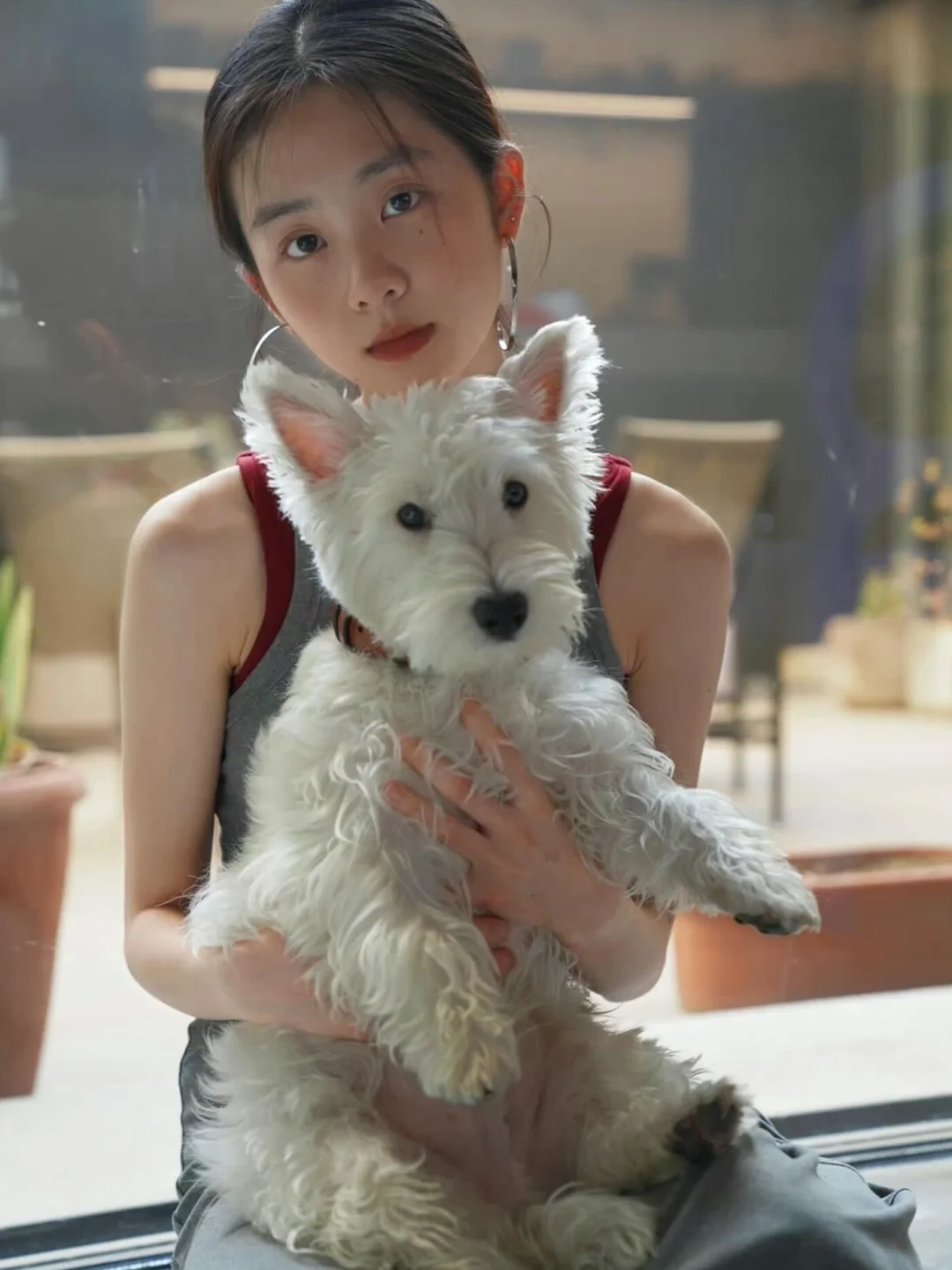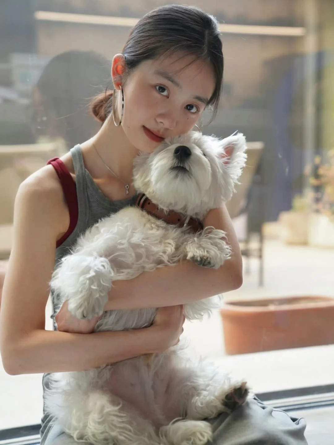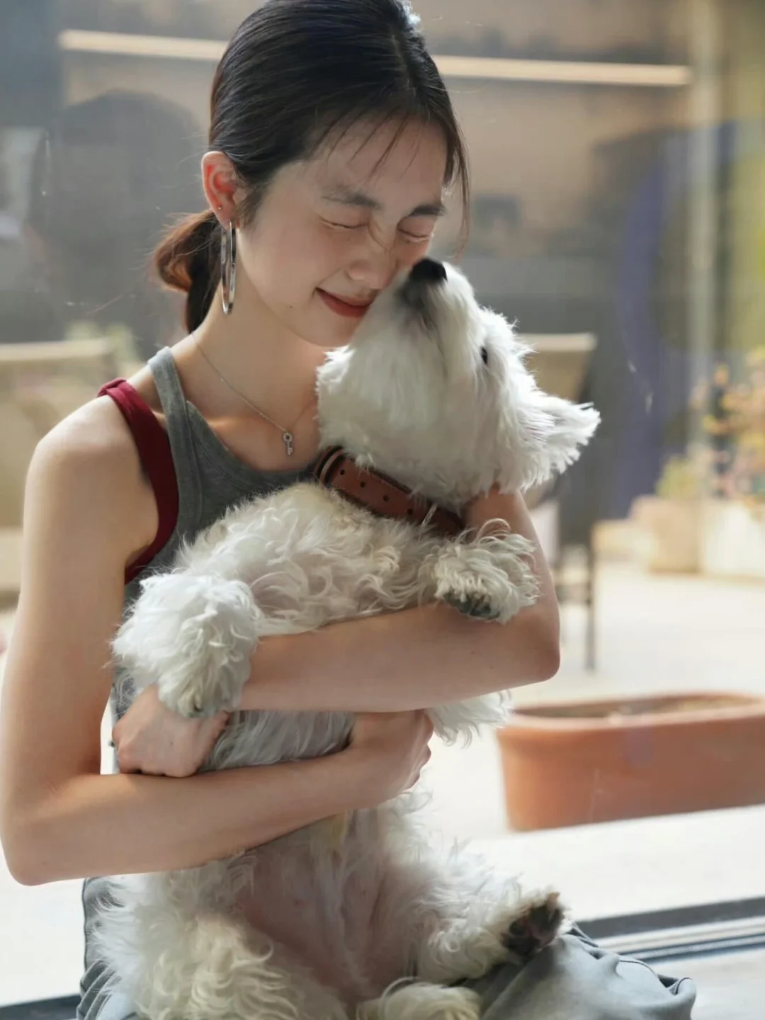 黄多多晒和小狗合照,眼睛真的很有特点,星二代中独一份的忧郁气质,很迷人