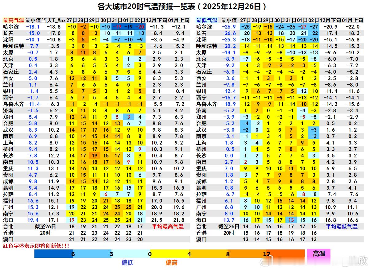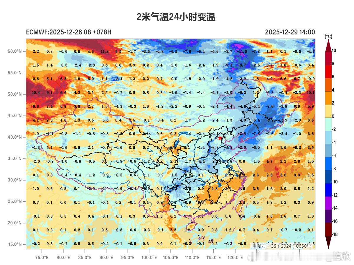【气温波动】未来2天,中东部地区将迎来大回暖。东北不少城市2天累积升温可达10-20℃。比如长春今天最高零下17℃、28日最高0℃。此外江南多地会重返15℃以上,华南重返20℃以上。但本轮升温并不均衡,夜间最低气温上升较慢,因此未来2天昼夜温差会显著拉大,多地一天中最高和最低会相差10℃以上,甚至更多。比如太原28日的昼夜温差有20℃。这轮回暖,北方到28日见顶,南方会持续更久,但东北地区在29日就会再次开始出现降温。12月30日-1月1日,冷空气还会继续东移南下。目前数值预报给出冷空气可能翻过南岭,元旦导致华南也有明显降温。但这个预报存在变数,后期再关注临近报的修订。