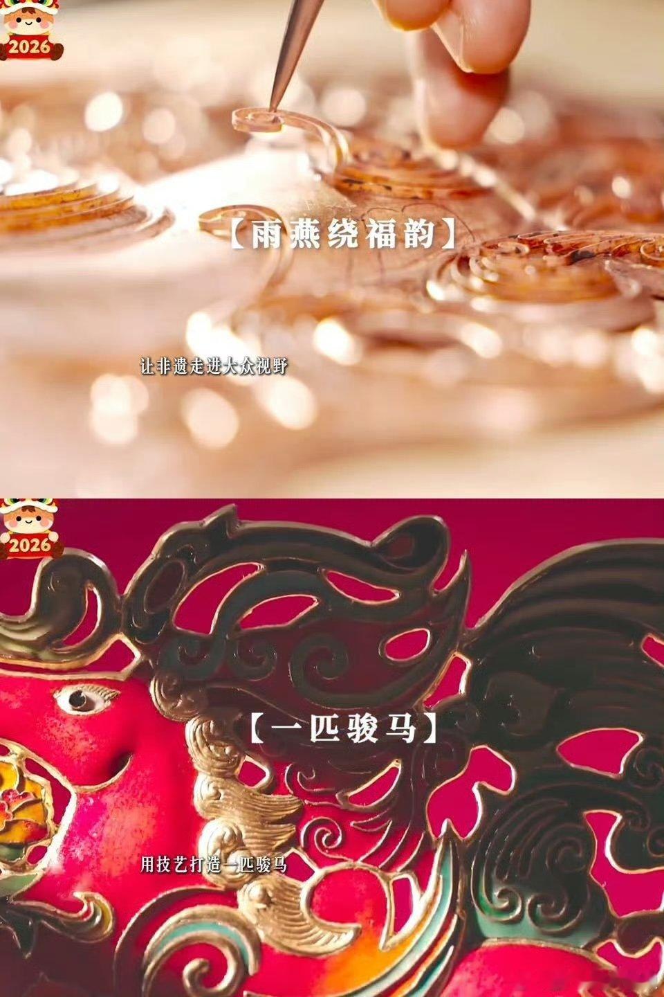 北京台春晚logo从二维到立体 北京台春晚logo跳出平面视觉限制,打造立体景泰蓝标识,借力景泰蓝非遗工艺赋能,铜胎塑骨筑牢标识基底,掐丝勾勒完整纹路,点蓝烧制锁住色彩,让平面图案变成立体实物,让春晚年味更浓