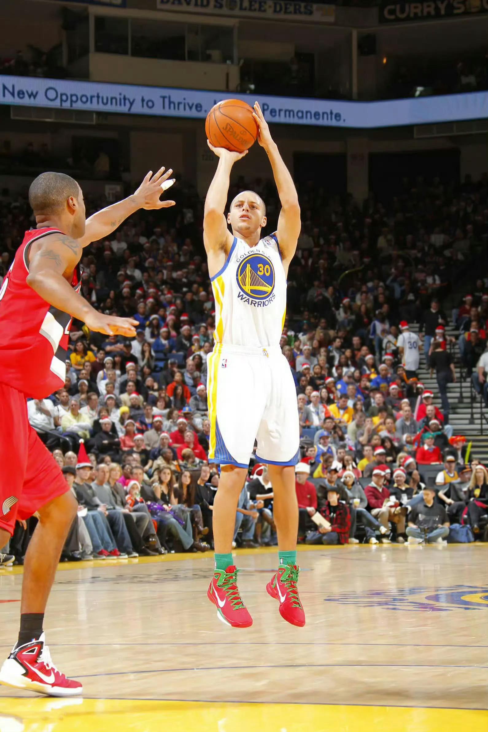 2025年圣诞大战库里上脚Hyperdunk 2010 “Christmas”配色致敬生涯第二年出战圣诞大战的自己