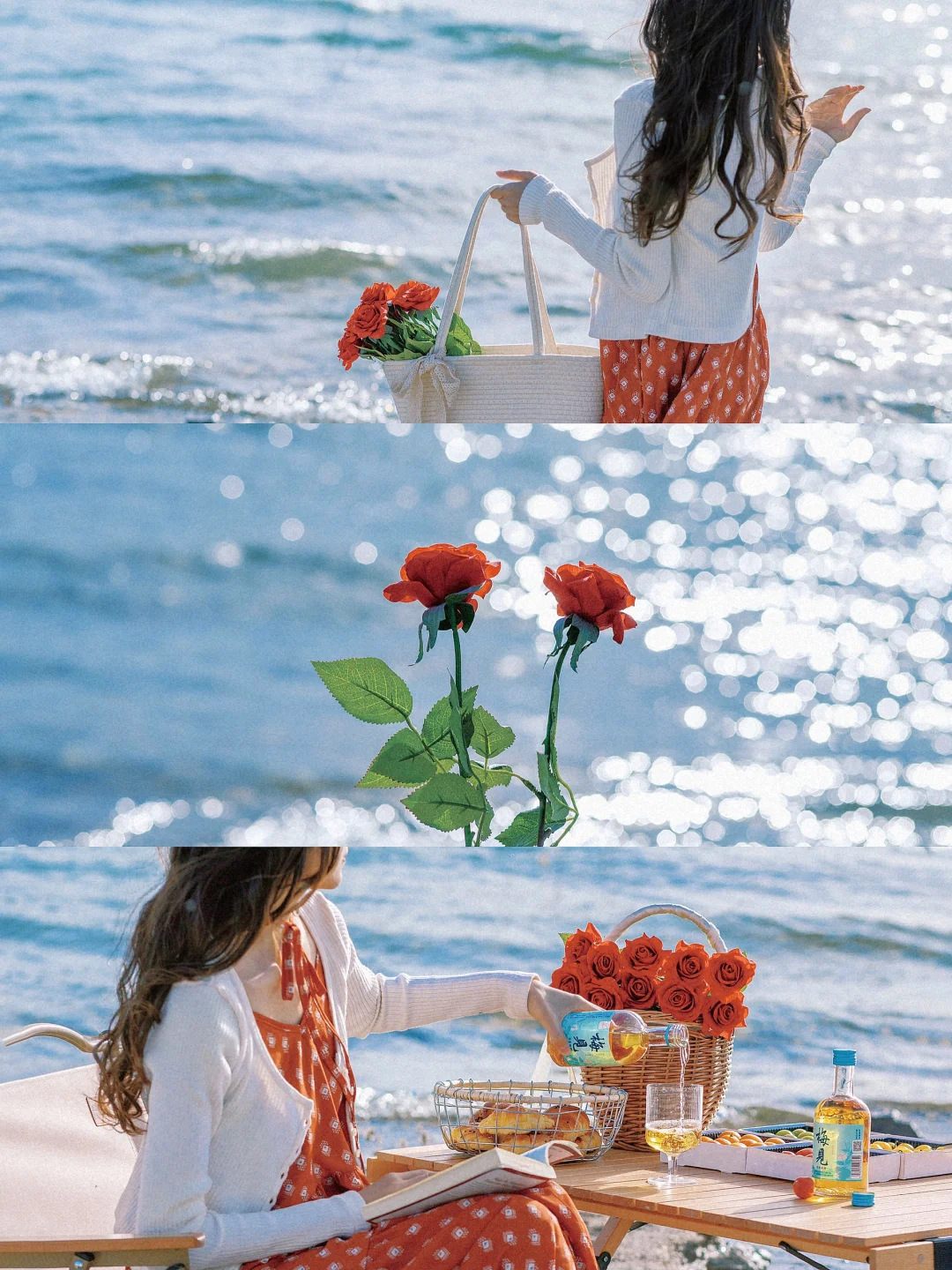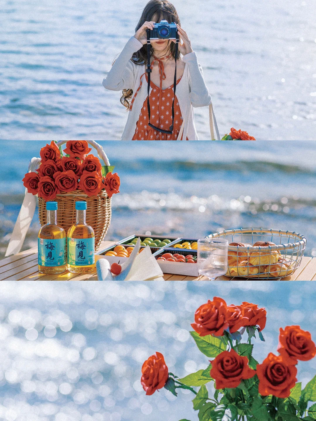 🌊在波光粼粼的湖边野餐,心情很容易被这种宁静的氛围治愈,一边野餐,一边拍照记录着这美好的时刻,阳光洒在身上,坐在海边喝点梅子酒微醺一下🥂,让整个氛围变得更加浪漫和愉悦~