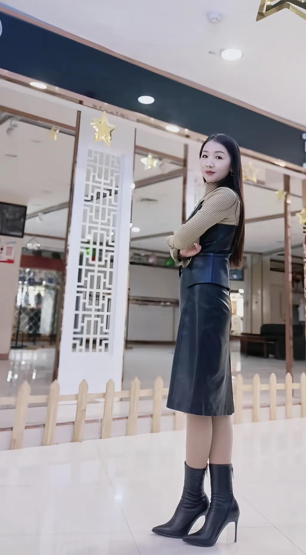 优雅气质穿搭,时尚皮裙与高跟鞋的完美结合