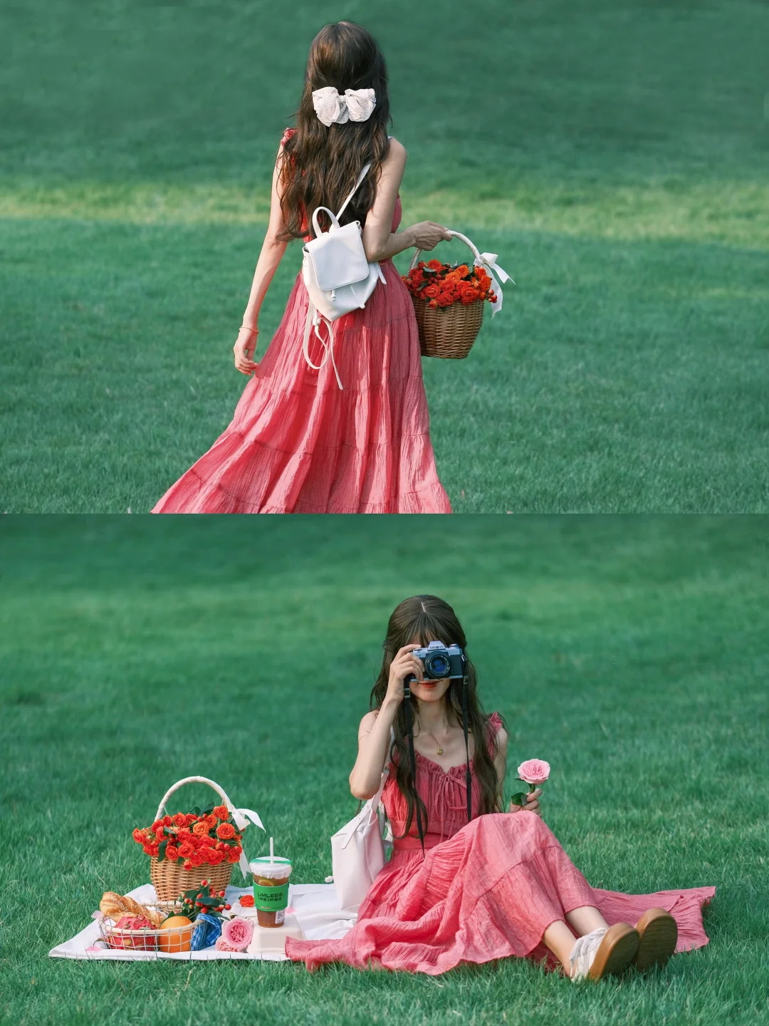 一边野餐一边拍照记录这个惬意的午后