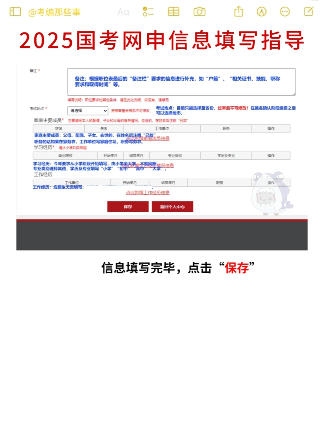 国考已经开始网申了 个人情况很多人不会填 没关系?这个模 板大家可以参考 类别:2025届毕业生注册的时候选应届生 专业:应与毕业证书或学位证书记载完全一致 毕业时间:2025应届生可以选2025年6月30日或2025年7月1日 实x经历:根据个人情况。填有材料证明的,以防在资格审查时造成不必要的麻烦。格式为某年某月-某年某月某单位 考试地点:注意了!资格审查合格后不可修改 备注:职位要求的其他条件,请在此处说明,如没有,请填无......