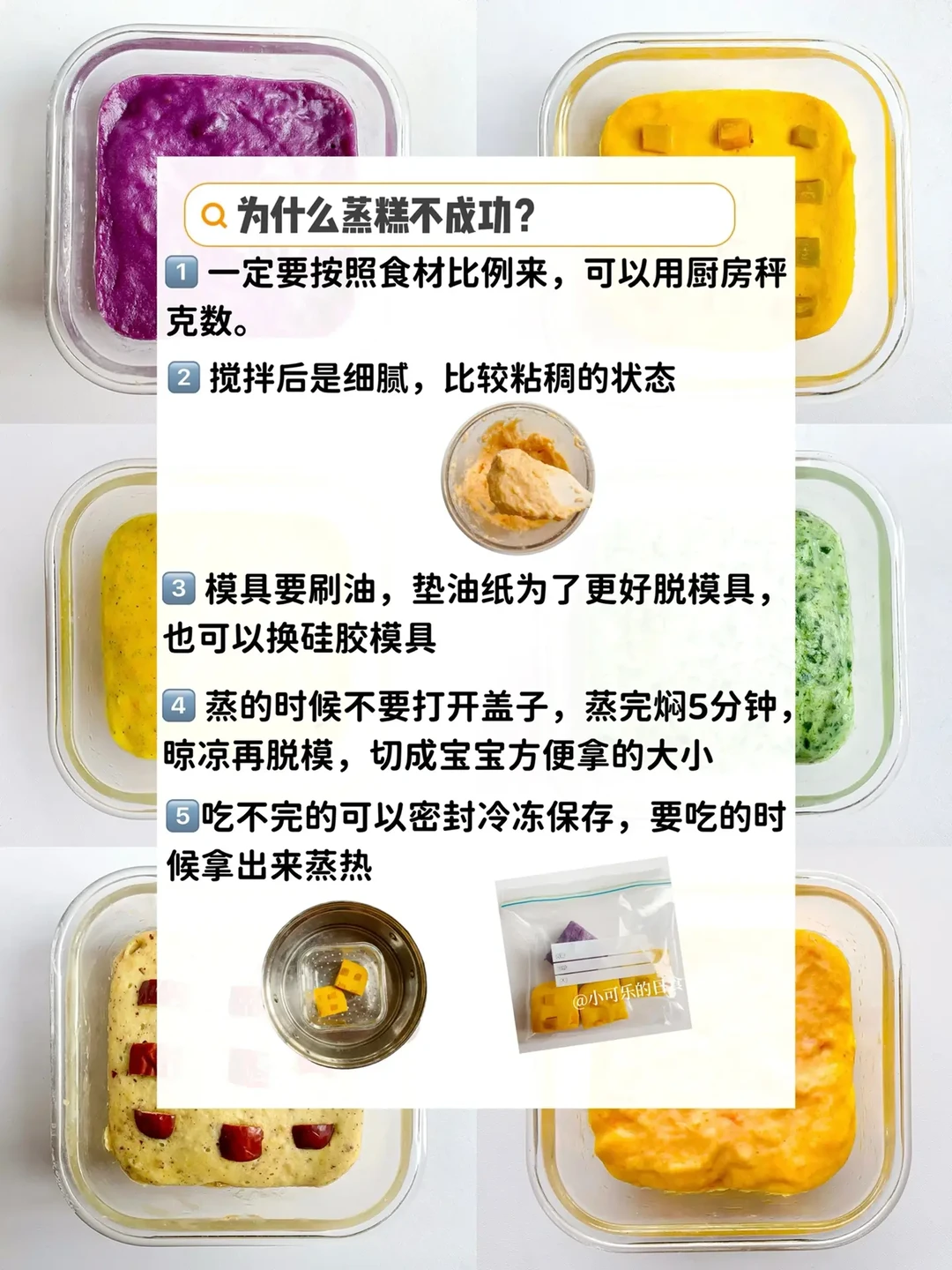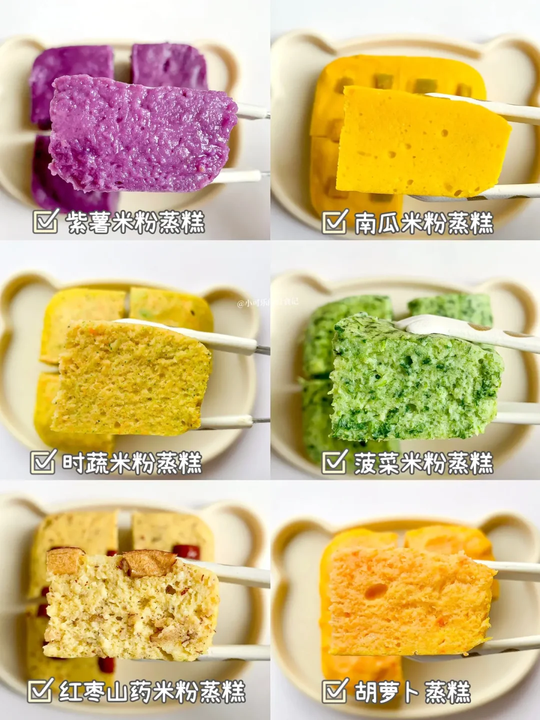 今天分享六款米粉蒸糕,一次就能成功那种,把闲置的米粉做成好看又好吃的手指食物,可以锻炼宝宝抓握能力和咀嚼能力。米粉版的蒸糕松软好吃,快给宝宝安排吧✅