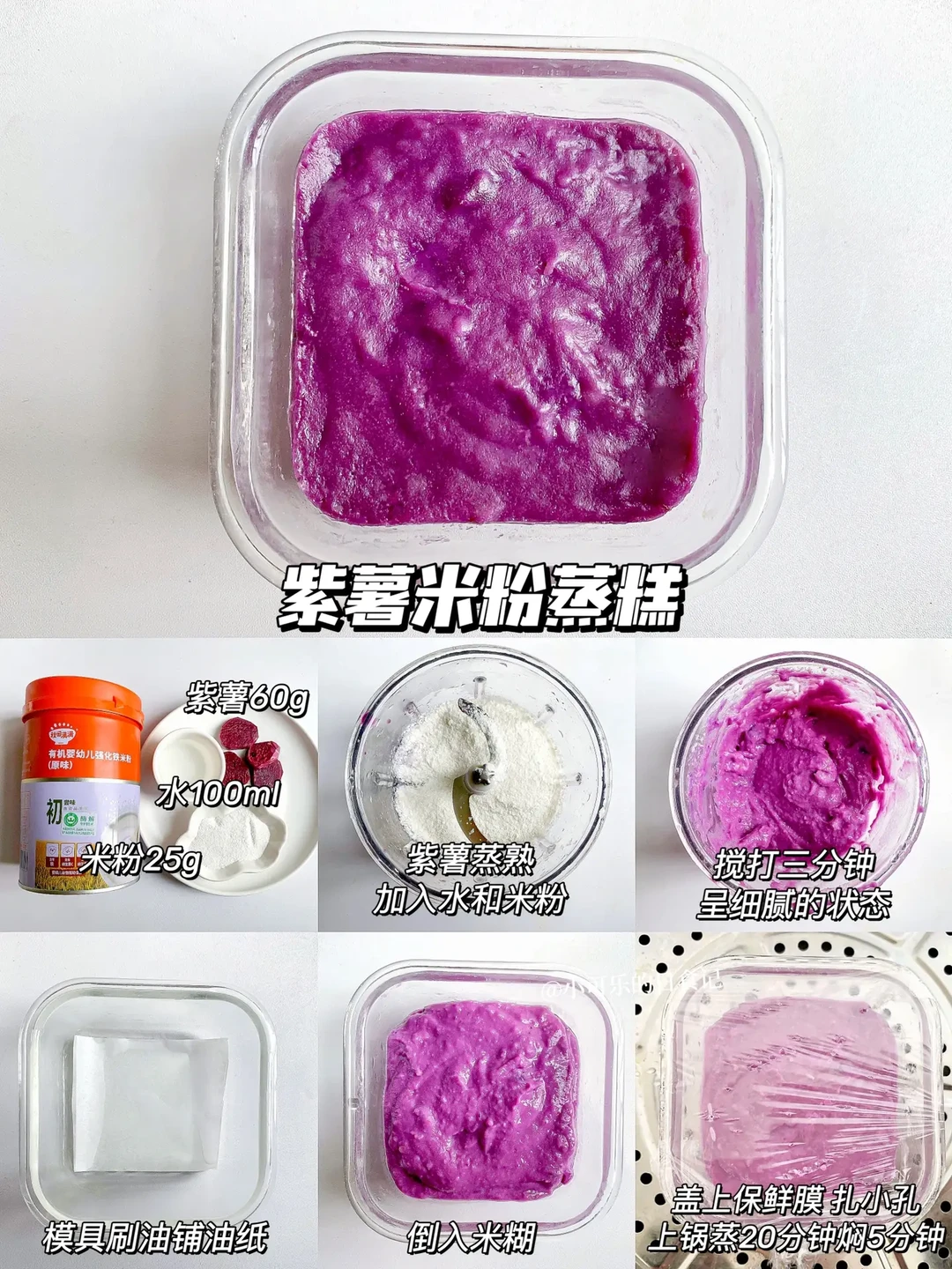 食材:紫薯60克、米粉20克、水100毫升
