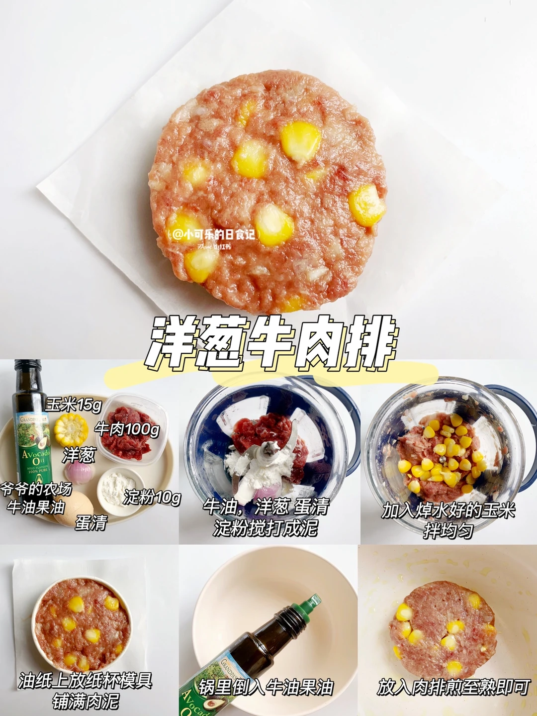 🥣食材:牛肉100克、淀粉10克、洋葱少许、玉米15克、蛋清半个