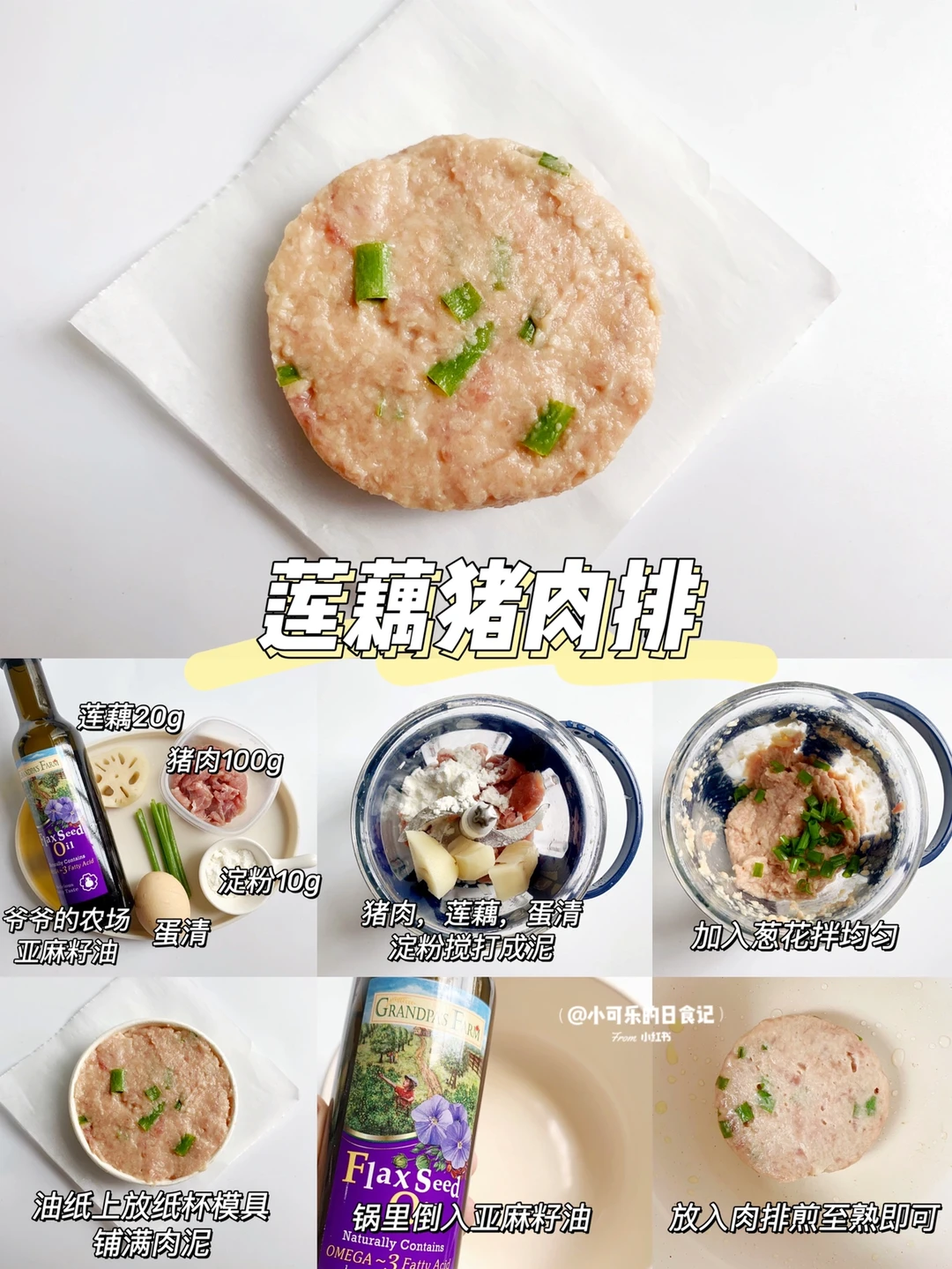 🥣食材:猪肉100克、淀粉10克、莲藕20克、葱、蛋清半个