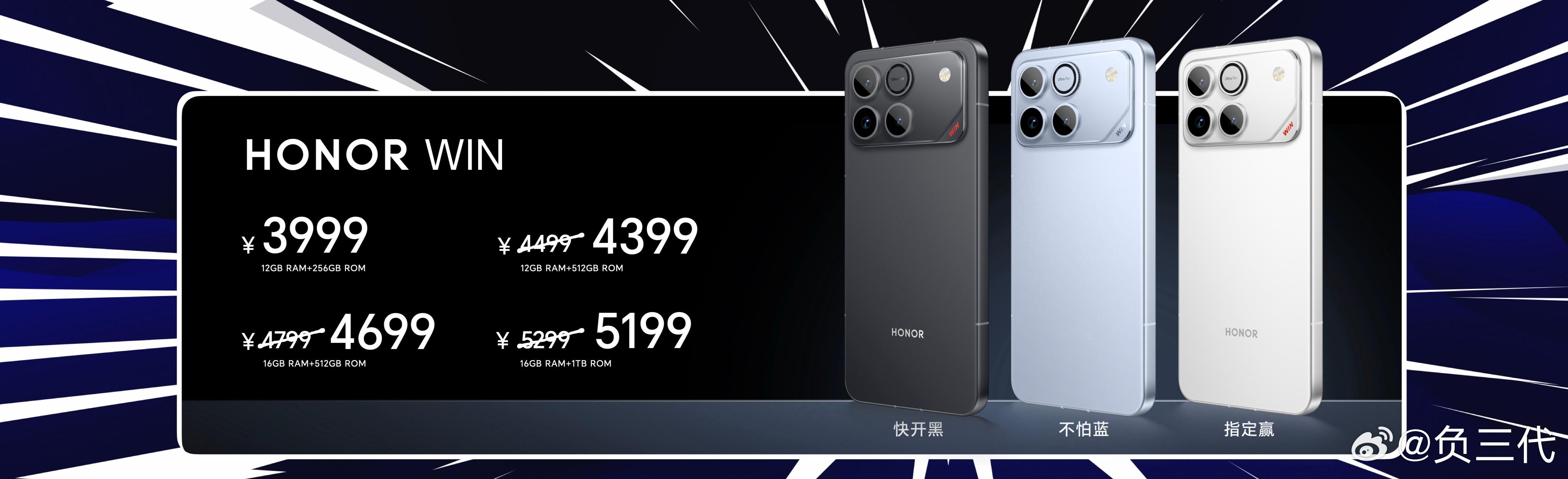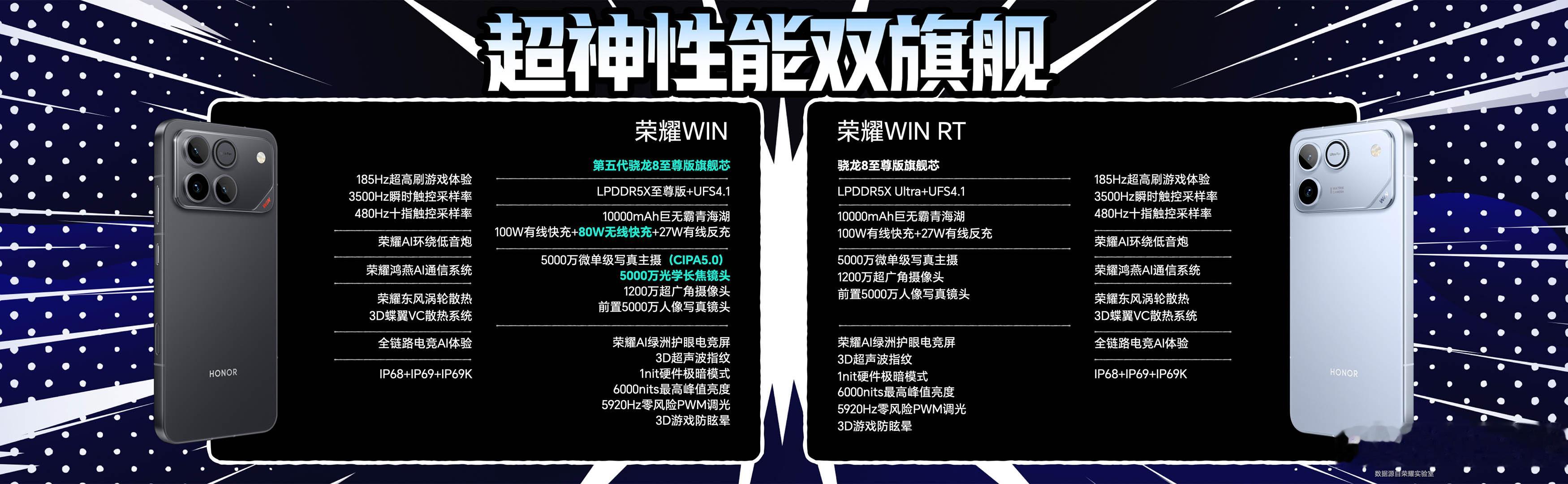 荣耀WIN系列价格公布:荣耀WIN RT 12GB+256GB 2699元起荣耀WIN 12GB+256GB 3999元起分别搭载第五代骁龙8至尊版和骁龙8至尊版,性能不用多说了。有着手机行业首款万级容量的电池,并且把涡轮散热放到了手机里,WIN和WIN RT版本都不错荣耀WIN价格年度夯机荣耀WIN价格真香