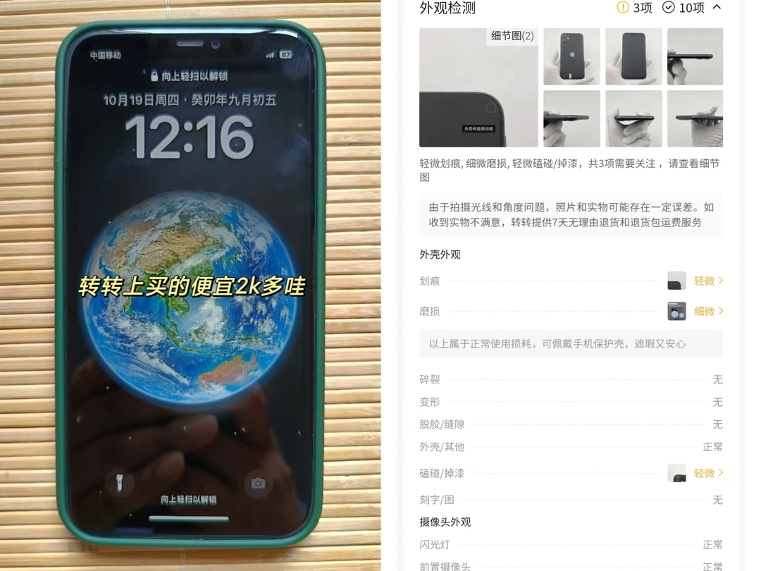 6.同款新机要好几千多,在转转买一台二手机不到一半的价格,而且到手跟新机没什么区别的