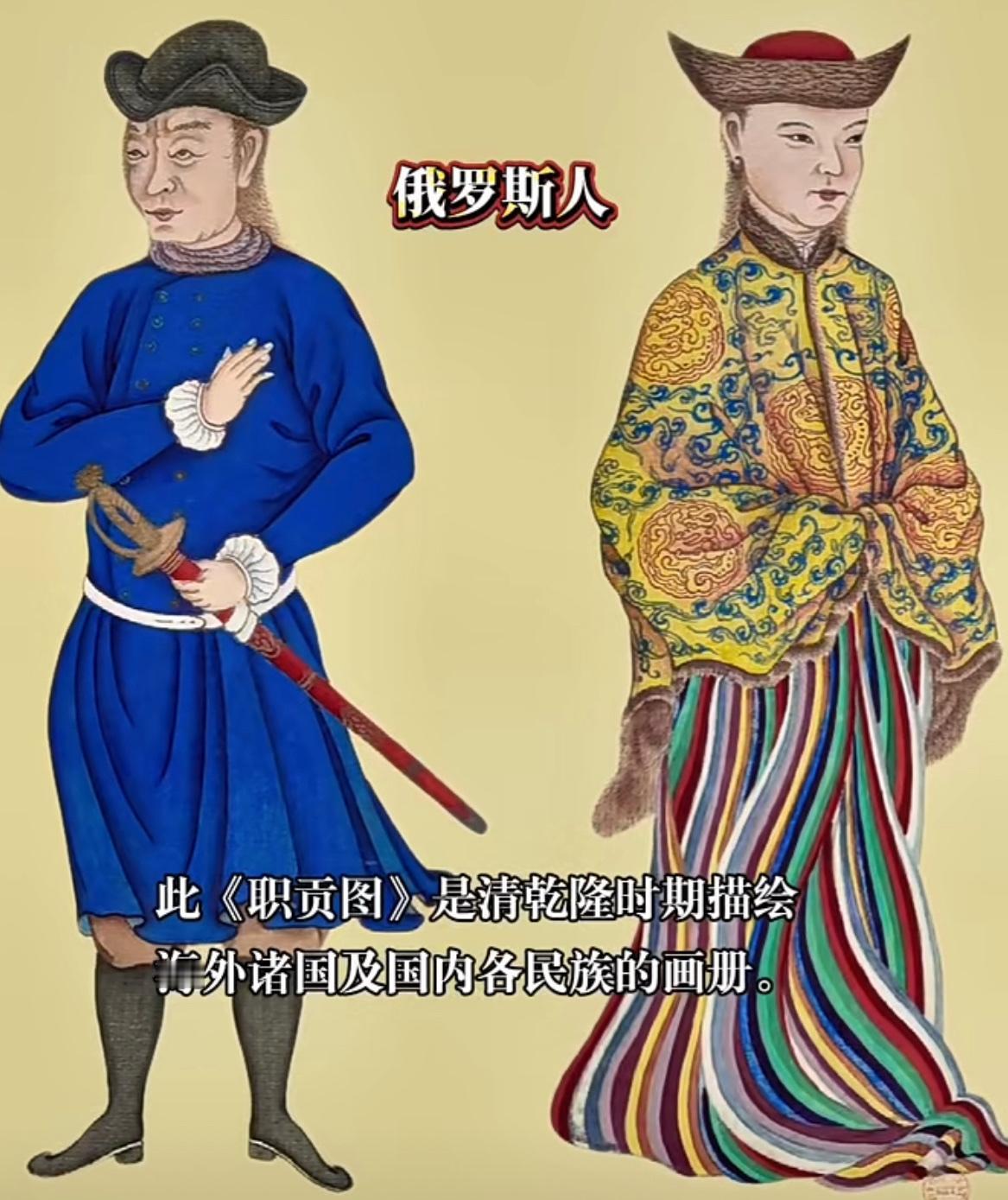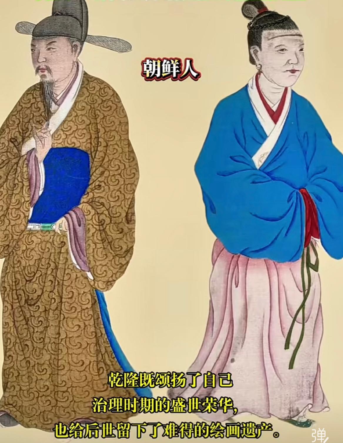 清朝人眼中的外国人原来长这样子的,感觉还是朝鲜的好看一些,基本上保留了明朝衣冠,当时朝鲜使者入贡到了清朝可谓是万众瞩目。图片来源乾隆时期的《职贡图》。 清朝 外国人 乾隆帝 衣冠
