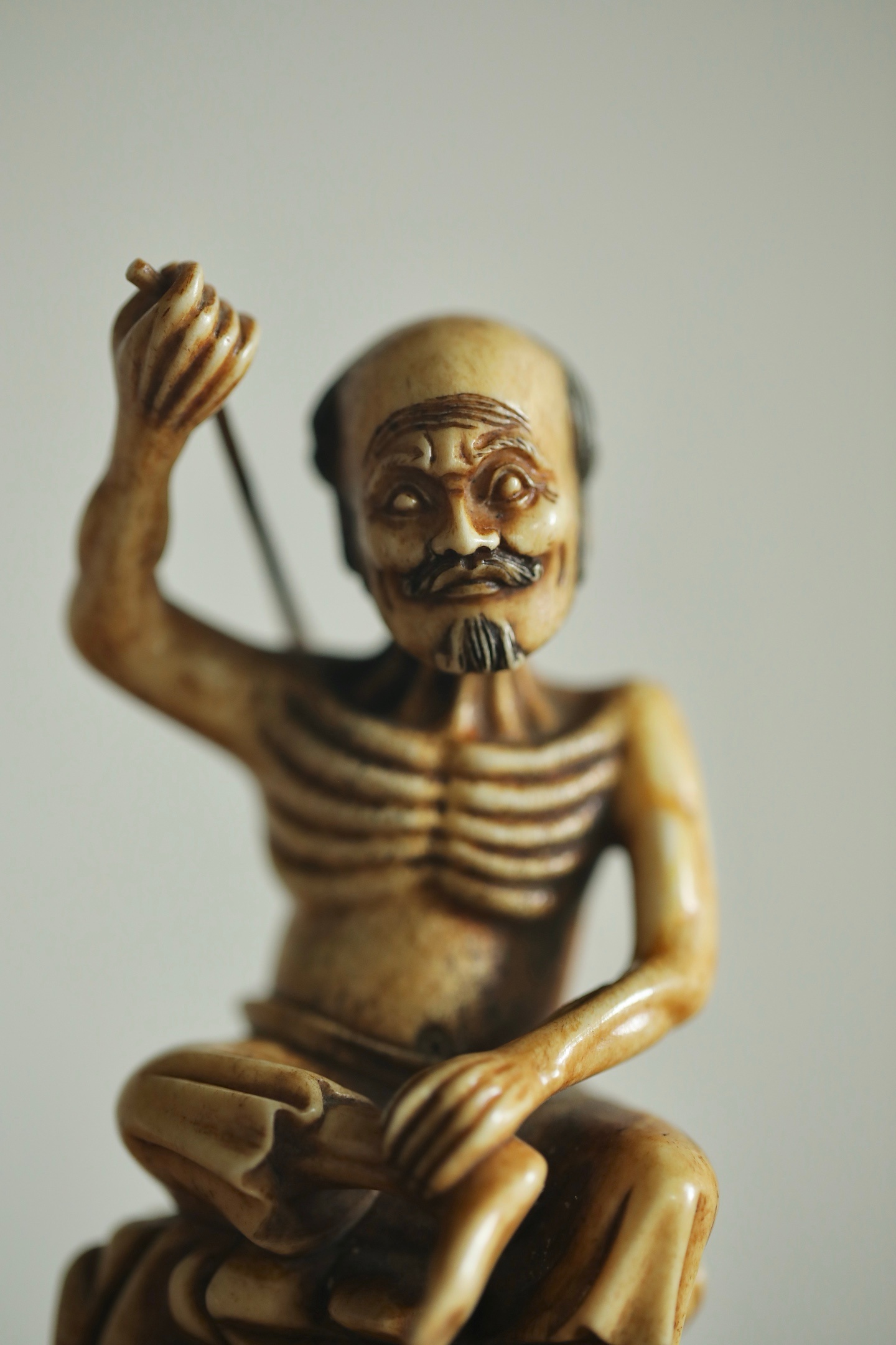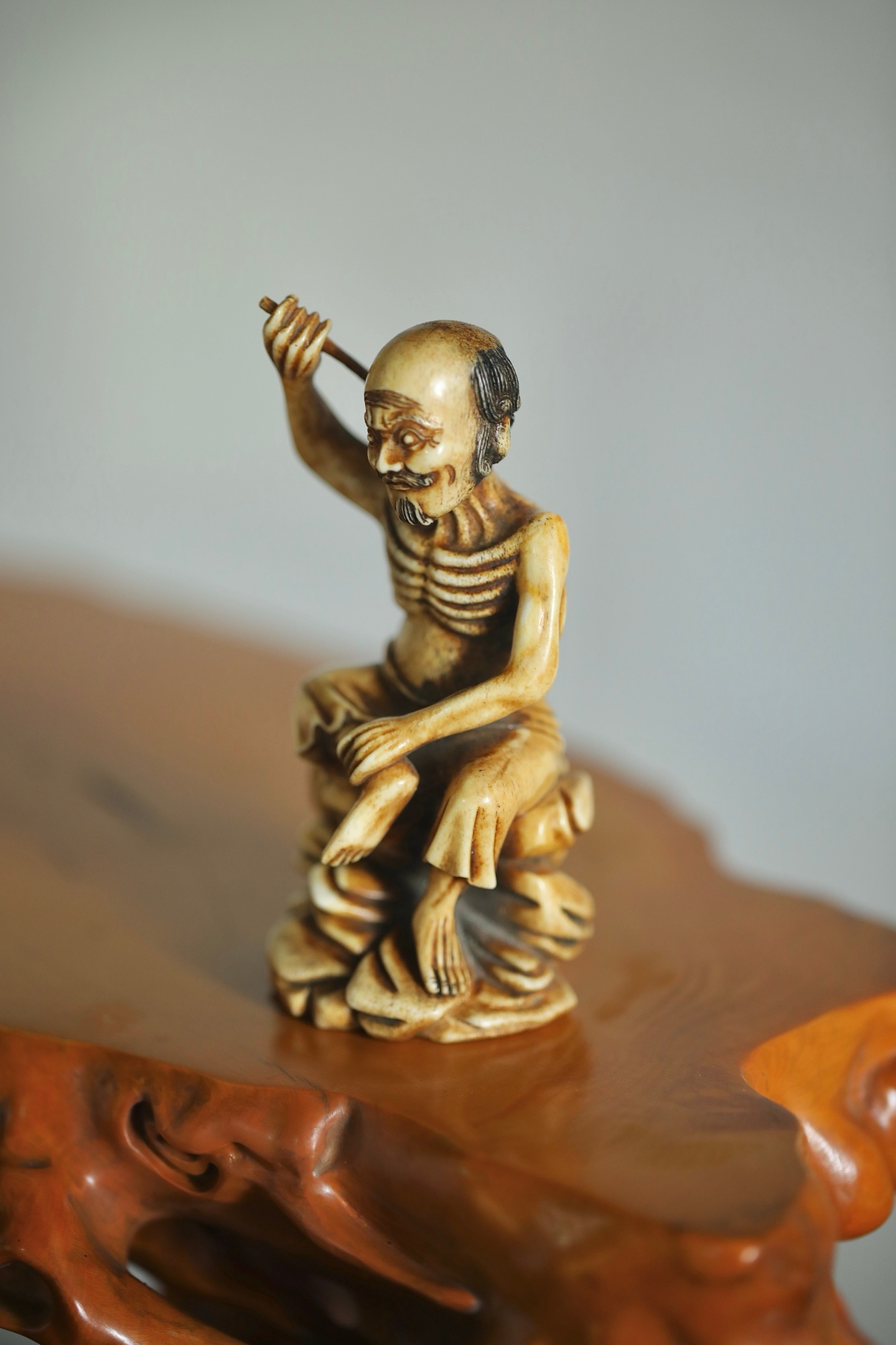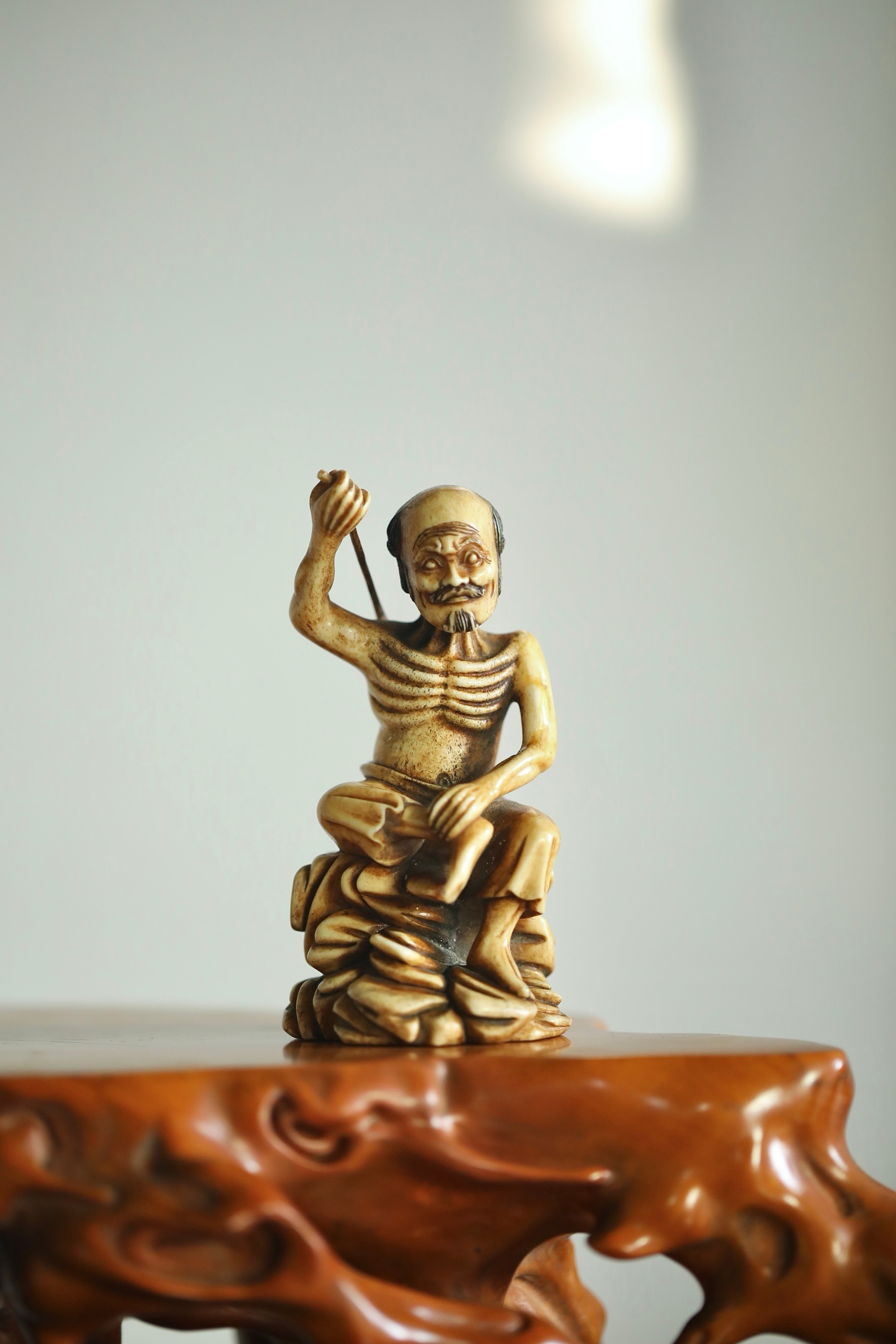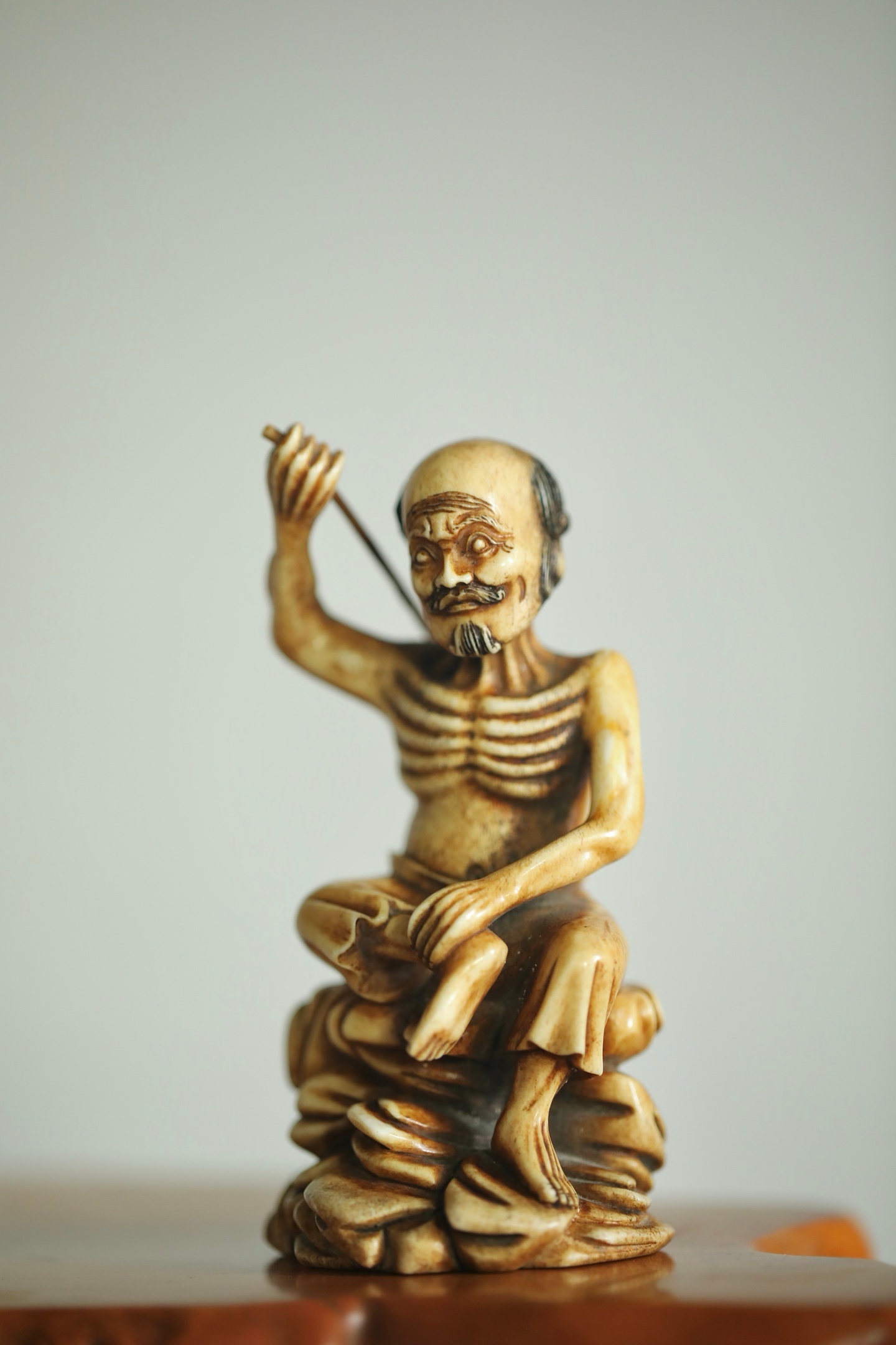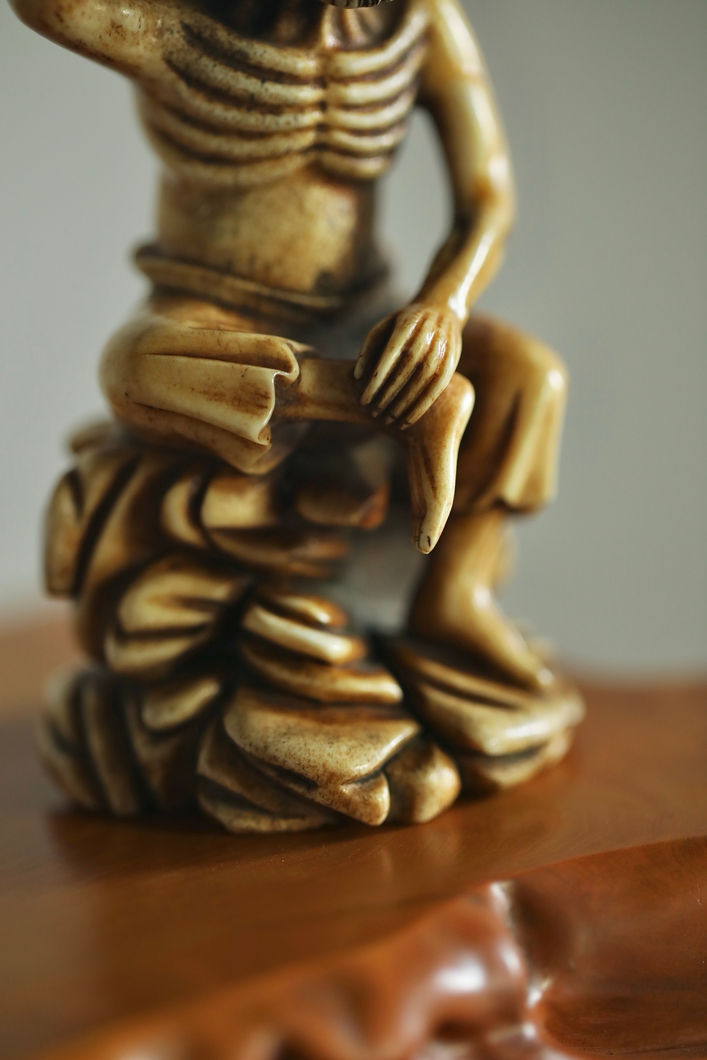 鹿角 | 瘦骨罗汉鹿角雕就的瘦骨罗汉,肌理仿肉身清癯之态,举手投足间藏禅意,角质