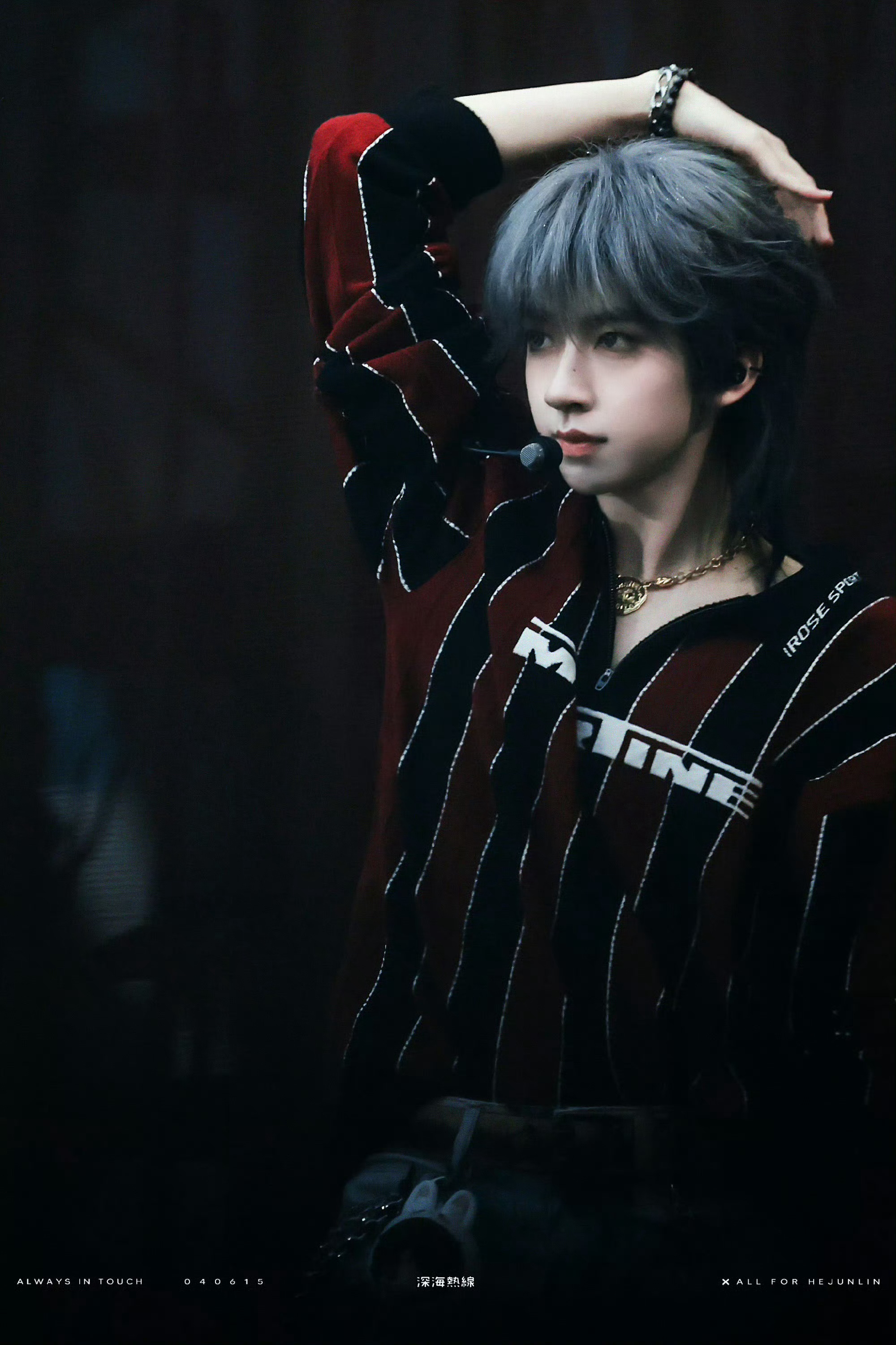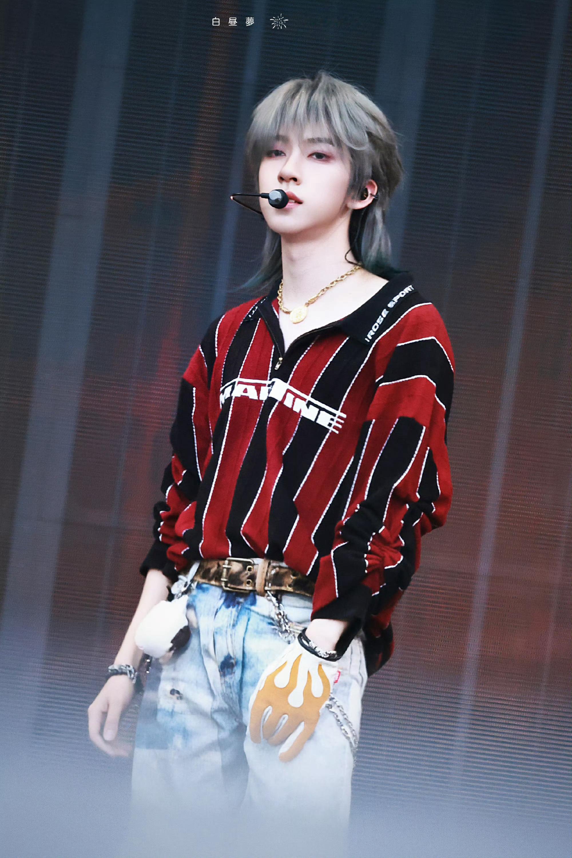 贺峻霖 × TF家族新音 舞台造型饭拍 📸佩戴CHANEL Vintage徽章项链贺峻霖银发狼尾