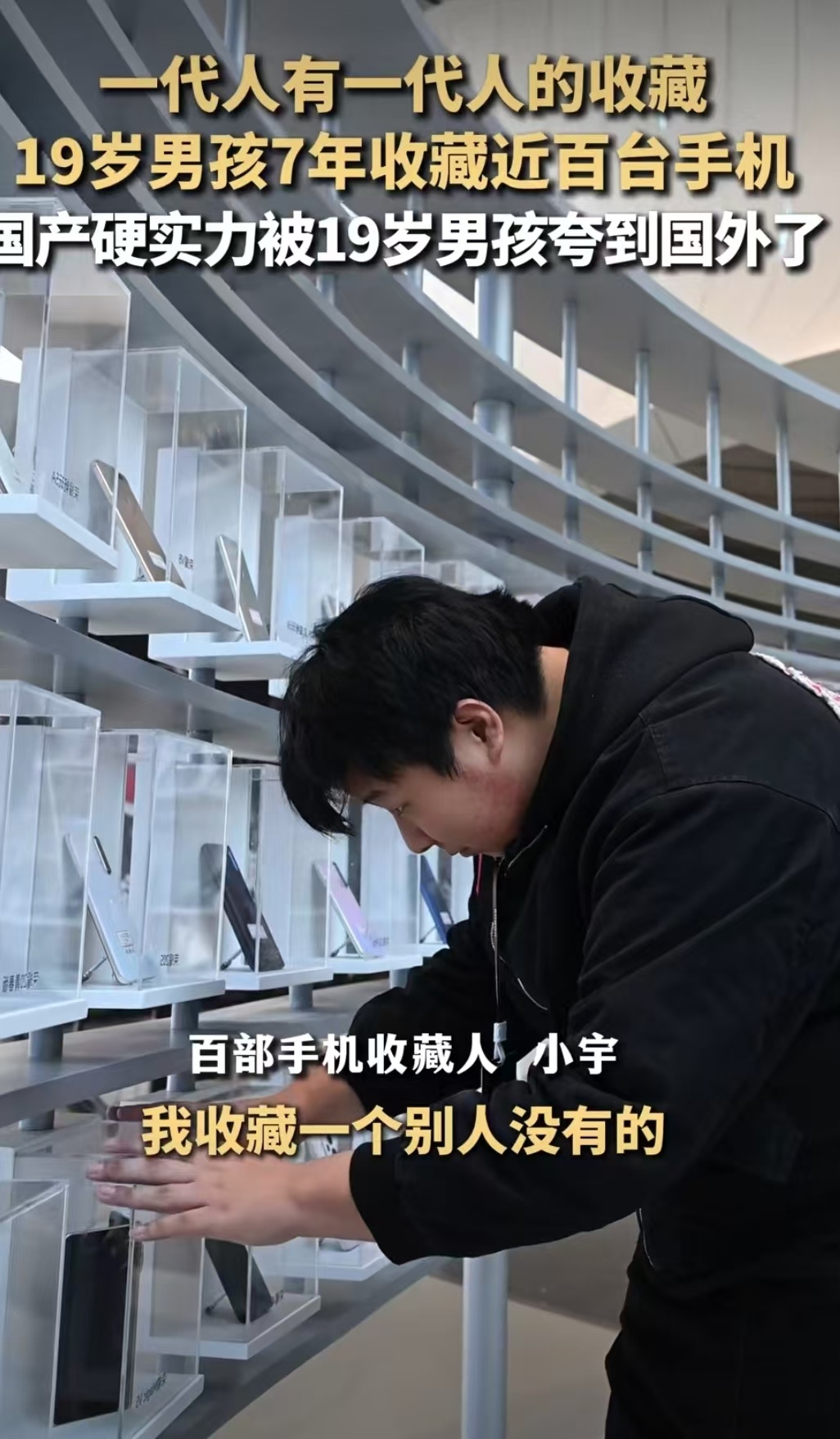 一代人有一代人的收藏19岁男孩7年收藏近百台手机 别人的19岁相册里是自拍与旅行,他的相册里是手机的“证件照”。每台机器的背后都有段回忆:那台三星滑盖机是用压岁钱买的,那台华为是攒了三个月兼职钱淘的,收藏即人生的注脚。