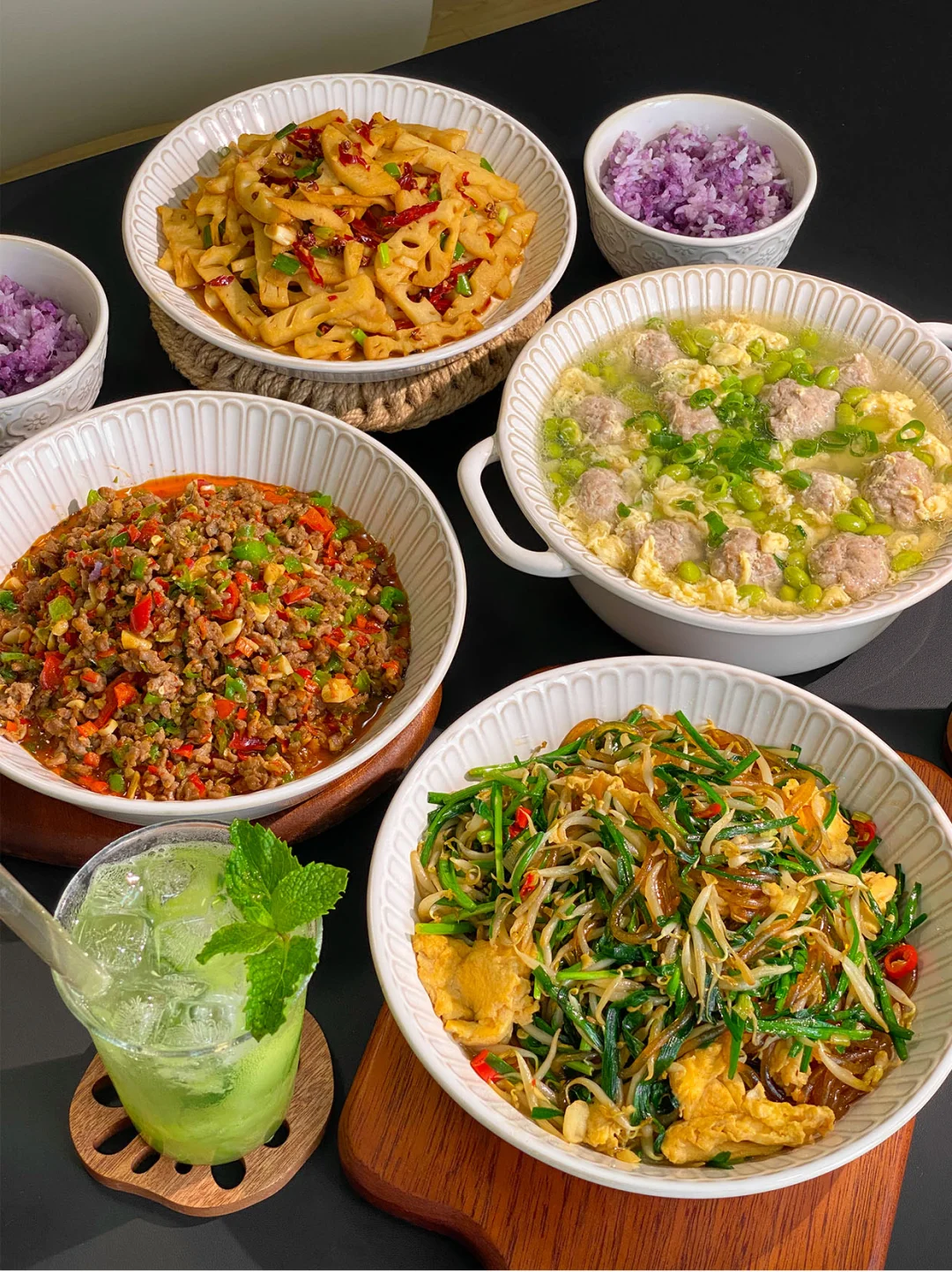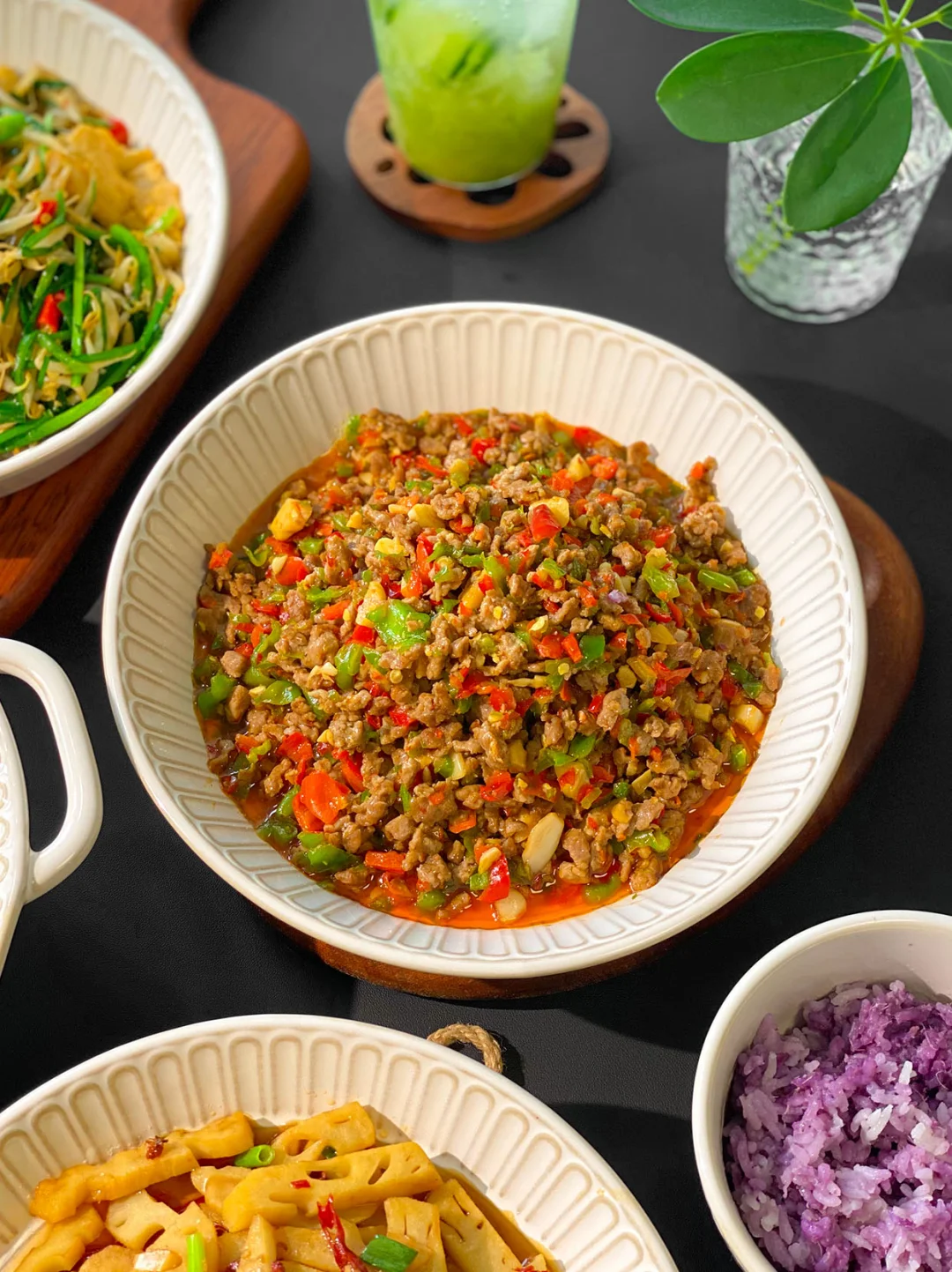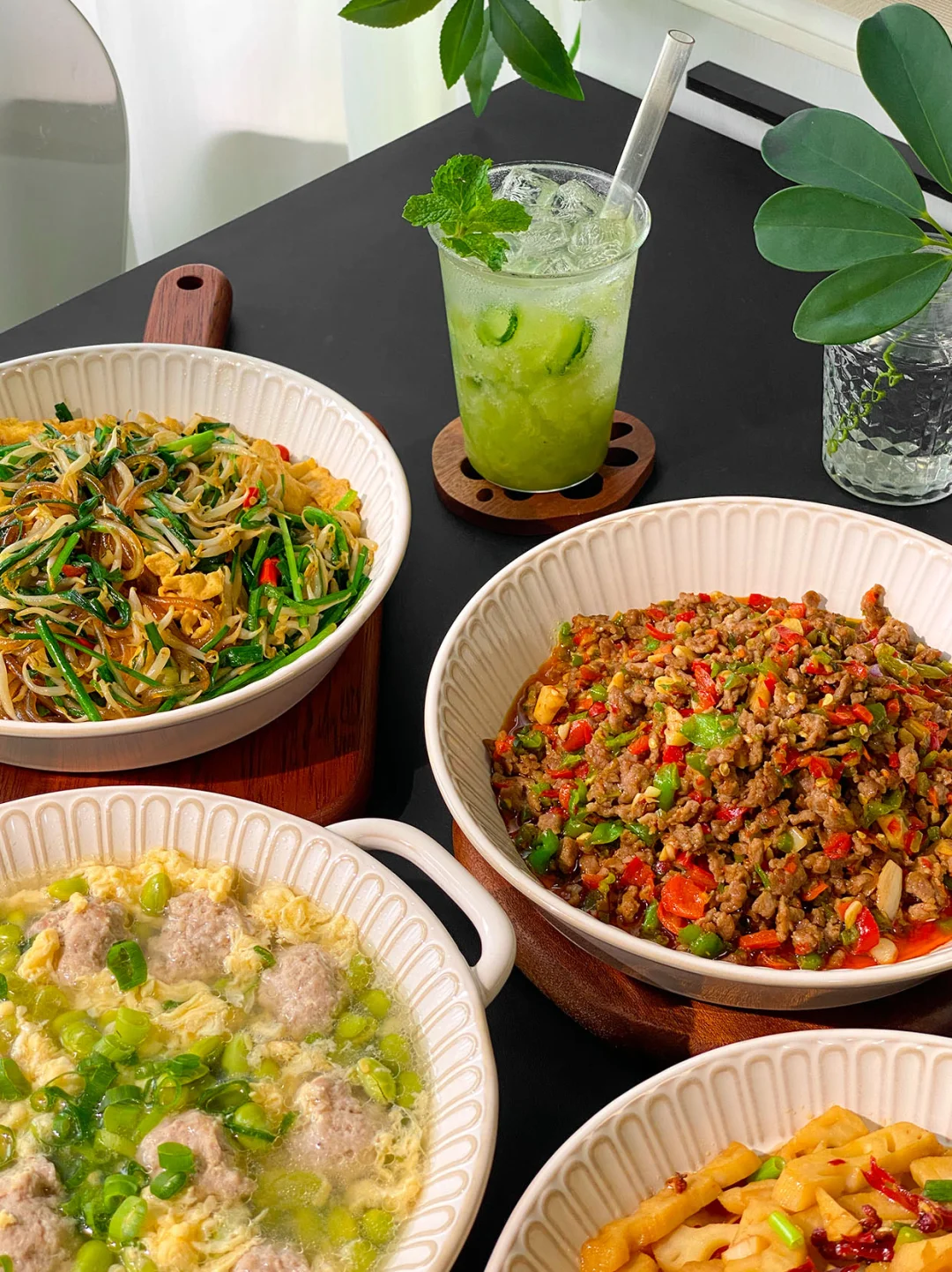 🧑🍳今天的家常菜灵感放送!鲜椒碎牛肉、毛豆肉丸汤、炒合菜、酸辣藕条,都是不用花太多时间,却超好吃的菜~