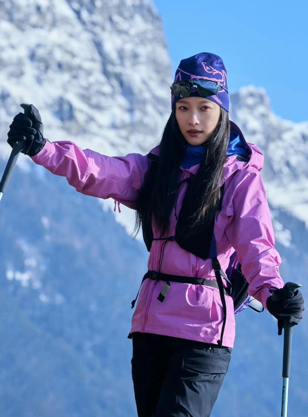 倪妮风格大赏都市户外风时尚灵感解读 倪妮的这组户外登山造型,将都市户外风的时尚精髓展现得淋漓尽致,打破了户外服饰“功能性至上、颜值不足”的刻板印象,用粉色冲锋衣搭配专业户外装备,在山野与都市的风格边界中找到了完美平衡。亮粉色冲锋衣,高饱和度的粉调跳出了户外服饰常见的黑、灰、蓝配色,既保留了冲锋衣防风防水的专业功能性,又凭借亮眼的色彩赋予造型都市时尚感。衣身的简约剪裁贴合身形,不会因户外装备的厚重显得臃肿,搭配黑色户外长裤,经典的“上亮下暗”配色法则,既保证了行动的便捷性,又让整体造型在视觉上更具层次感,黑色的收束也让粉色的张扬多了几分沉稳,契合都市女性的审美偏好。配饰的选择则是专业与时尚的双重融合:紫色针织冷帽与粉色冲锋衣形成撞色呼应,帽身的暗纹图案为简约造型增添细节;运动墨镜不仅起到户外防晒的实用作用,还为整体造型注入酷飒气场;黑色手套、登山杖与双肩包等专业户外装备,强化了造型的户外属性,而冷帽、墨镜这类都市穿搭中常见的单品,又让专业的户外装备摆脱了“硬核”的标签,变得更具日常搭配性。背景的雪山草甸与倪妮的造型形成鲜明的视觉对比,亮粉色冲锋衣在自然的冷色调中格外吸睛,却又不会显得突兀,反而让人物与自然场景的融合更具画面感。这种“在自然中彰显都市时尚,用专业装备诠释日常美学”的搭配思路,正是都市户外风的核心——既不放弃户外的自在与松弛,又不丢掉都市的精致与格调。倪妮的这套造型,为都市户外风提供了绝佳的穿搭范本:户外服饰不必局限于山野,选对色彩与剪裁,搭配都市感配饰,就能让专业的户外装备成为日常造型的亮点,也让我们看到,时尚从来不是被场景定义,而是在不同的生活场景中,找到属于自己的风格表达。