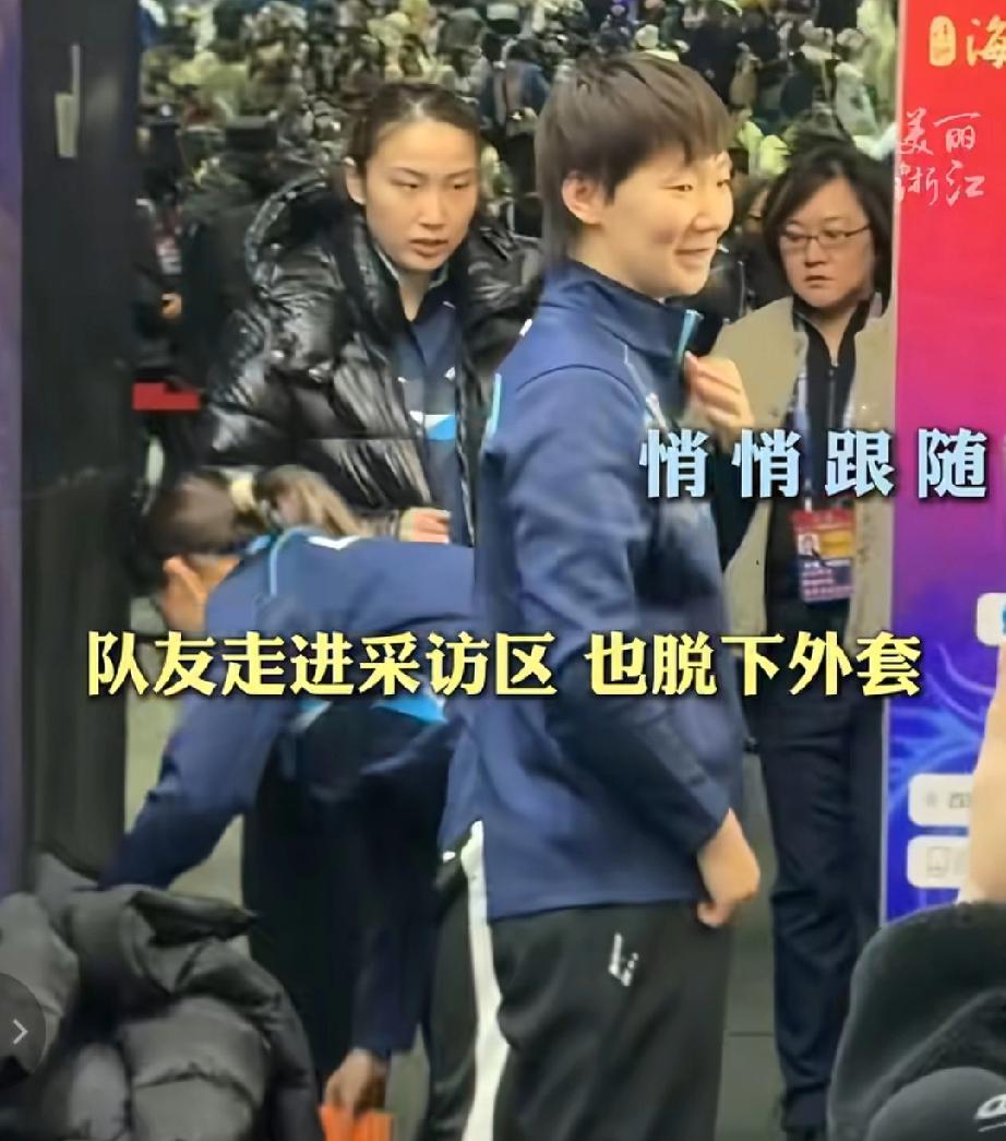 南京乒超联赛总决赛女团半决赛,王曼昱独赢两分率领山东鲁能俱乐部3-1战胜华东理工大学俱乐部。赛后来到采访区,一开始曼昱是脱掉外套,以为需要露出球队赞助商标志接受采访,结果现场工作人员觉得场馆太冷了,还是让王曼昱和队友都穿好羽绒服接受采访。 曼昱因为赢了比赛,肉眼可见心情大好,满脸笑容配合记者采访!采访中也是极尽夸赞和鼓励队友甚至对手运动员,面面俱到的完成了采访!