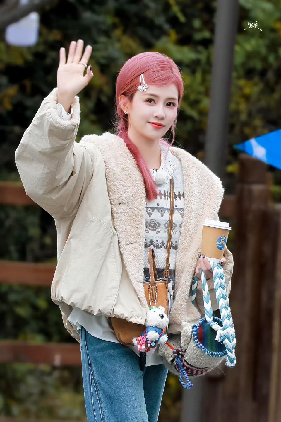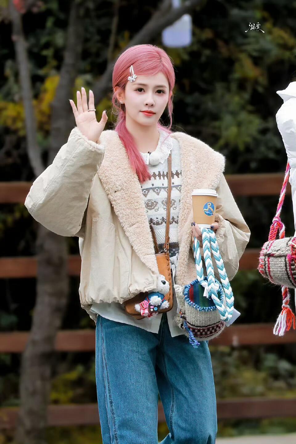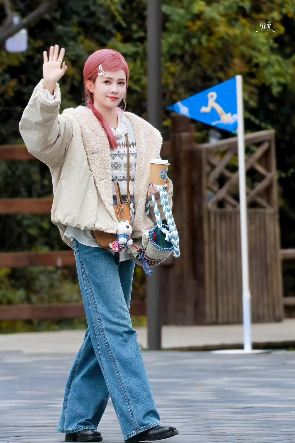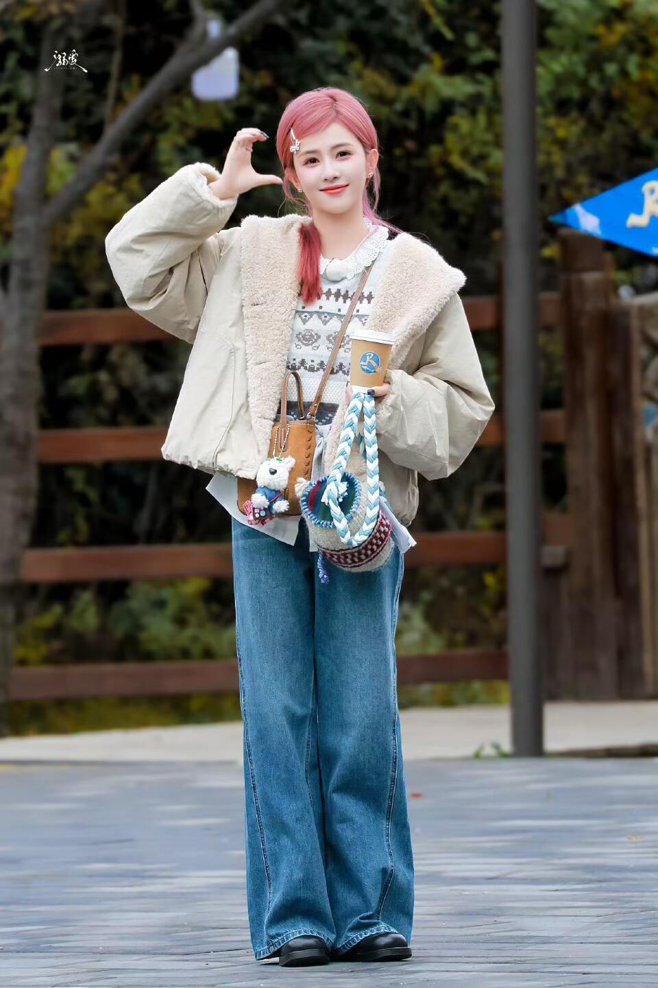 白鹿风格大赏softcore 西藏站《奔跑吧兄弟》的录制现场,白鹿的穿搭直接把softcore柔式美系叠穿玩出了新花样,成为镜头里的亮眼存在。她的造型从内到外都透着巧思,基础款白衬衣作为内搭,柔和的面料中和了整体的厚重感,外面叠搭着带有复古花纹的针织马甲,细腻的针织纹理与衬衣的清爽形成质感反差,再套上一件浅卡其色的毛毛外套,毛绒翻领自带温暖慵懒的氛围,三层叠穿不仅没有显得臃肿,反而让整体造型的层次感拉满,完美适配西藏的秋冬气候。下装搭配的刺绣牛仔裤是点睛之笔,经典的牛仔蓝沉稳又百搭,裤身的刺绣细节悄悄融入甜酷风格,中和了上半身的柔和感,让整体造型刚柔并济。配饰部分更是细节感拉满,她斜挎的棒球水桶包带着复古运动风,包身的撞色设计与整体穿搭的浅卡其、牛仔蓝相呼应,而挂在包上的狗狗小挂饰则添了几分可爱趣味,瞬间让硬朗的户外造型多了软萌的少女感。一头粉调红发在素净的冬日背景里格外亮眼,搭配毛绒花纹的针织帽,与毛毛外套的材质相呼应,整套造型把softcore柔式美系的随性与甜美融合得恰到好处。白鹿用简单的基础款通过叠穿和配饰的巧思,打造出满溢的秋冬氛围感,既兼顾了户外录制的实用性,又美得毫不费力,堪称秋冬叠穿的教科书级示范。