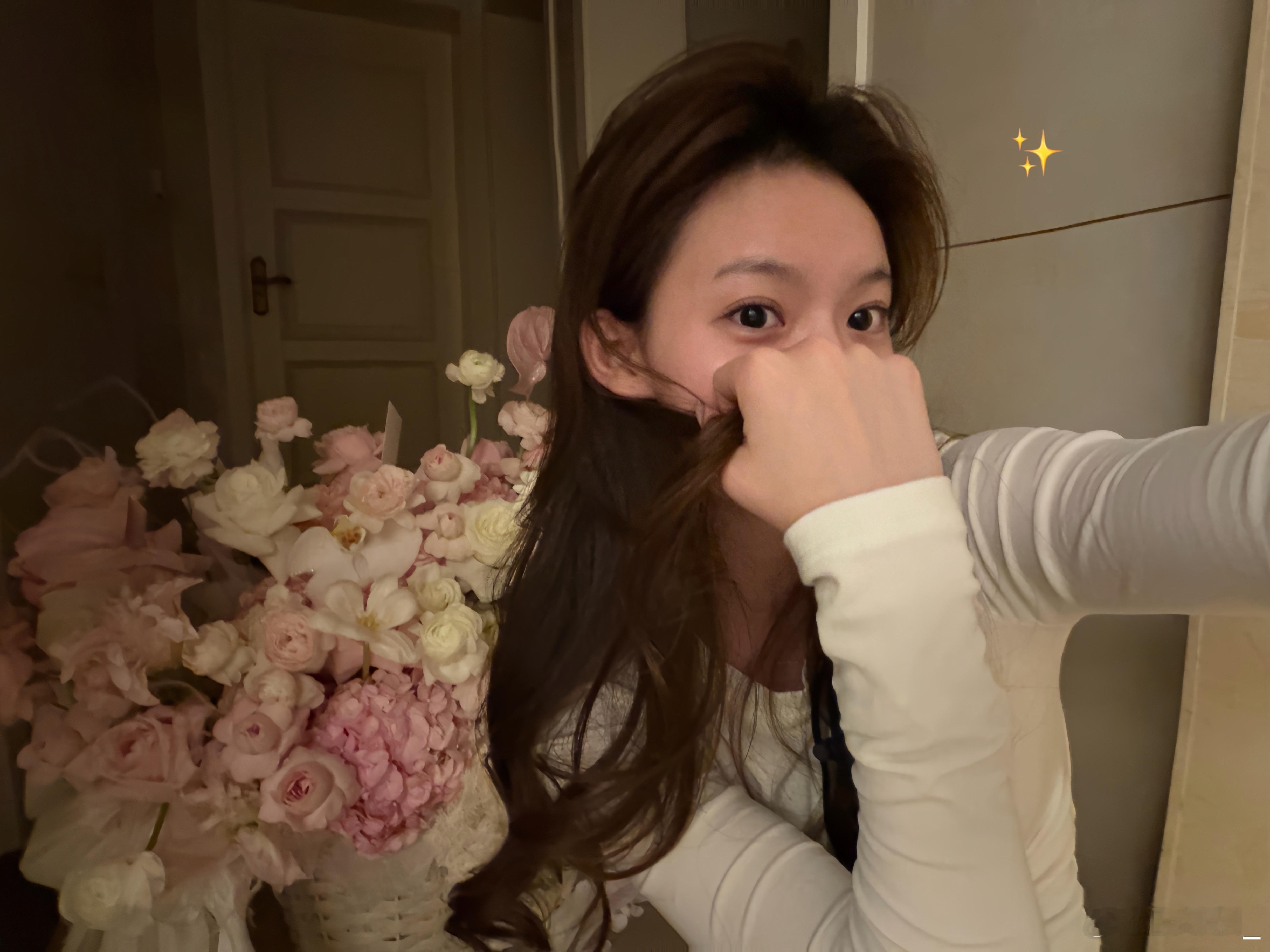 到家已经一点了 到房间门口竟然有花花 我今晚一定做个香香的美梦 晚安195 晚安