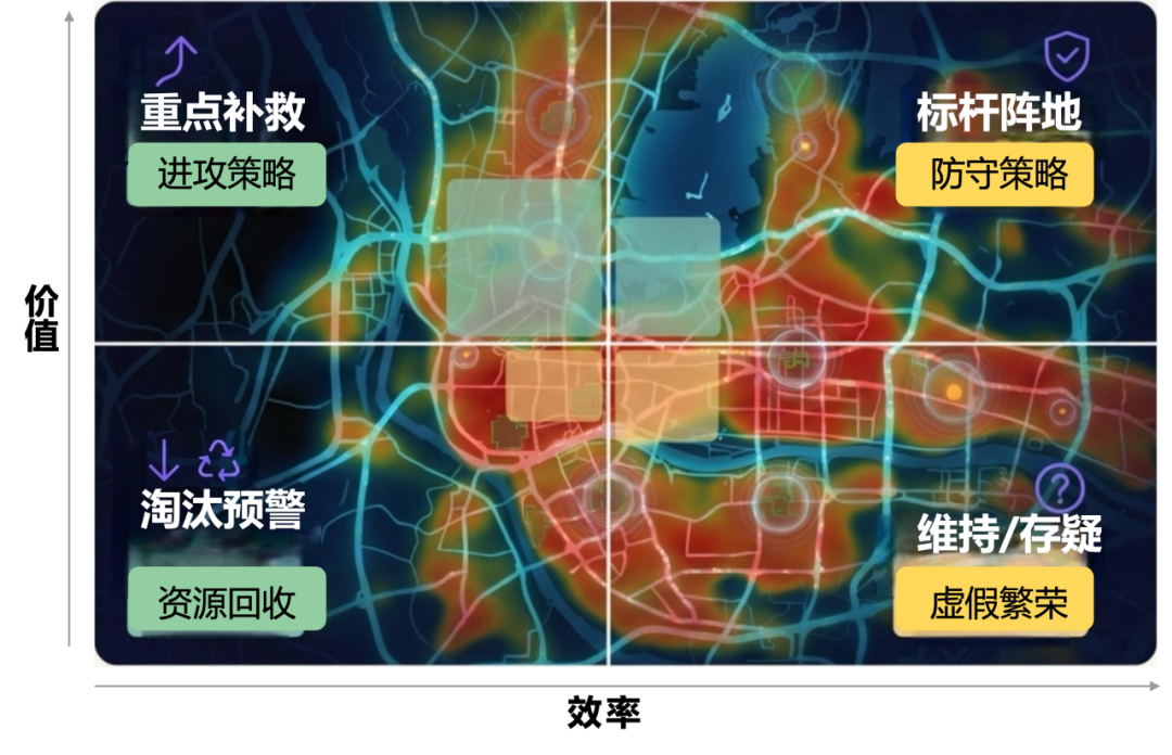 与其他云厂商不同,腾讯全生态的大数据,包括地图坐标和人流、地貌与商业画像、支付频次客单、甚至是用户兴趣偏好,都能更为精确地帮助晶确匹配“人”“货”“场”。在高度耦合的数据供给中,晶确能够高效地对GTM/PMF投入产出比进行分析,帮助客户找到过多投入或者欠投入的商圈点位。