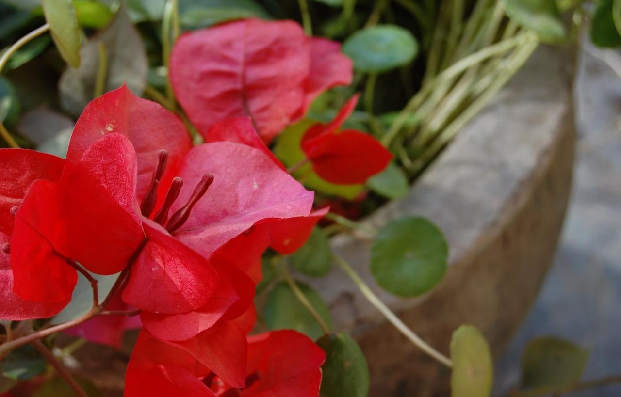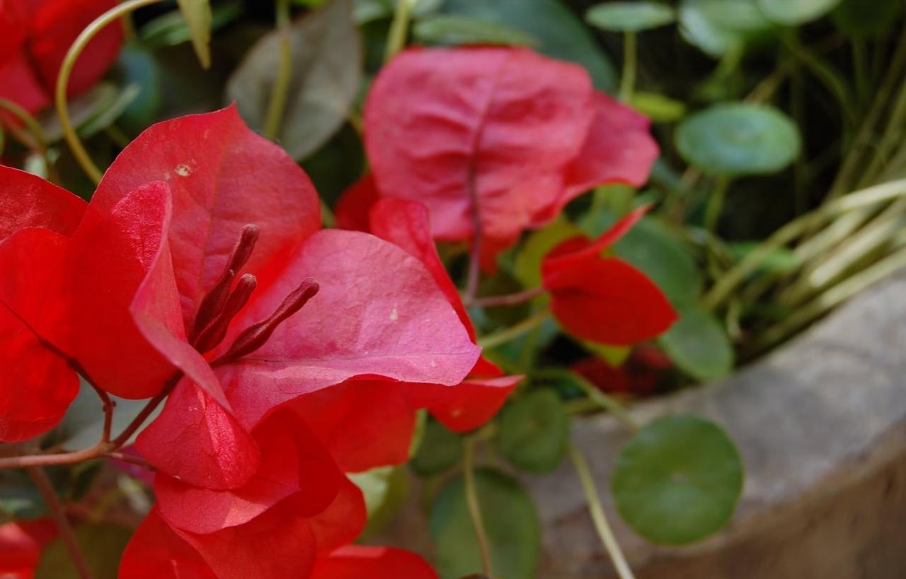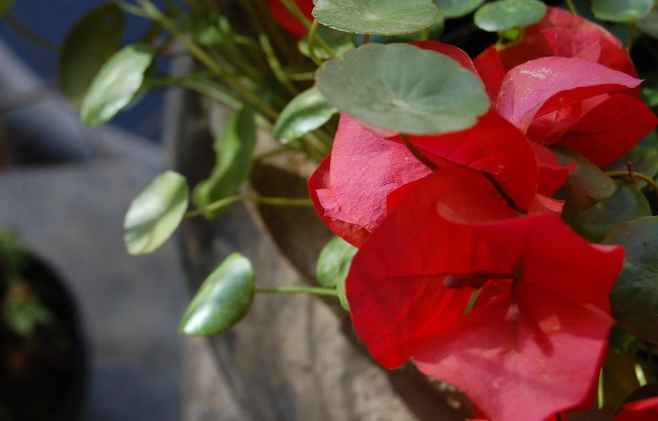 摄影 红色三角梅绽放,像燃烧的火焰,热烈又张扬。阳光洒在花瓣上,折射出耀眼的光泽