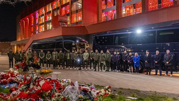 缅怀逝者狼队球员们来到安菲尔德球场,为若塔献花