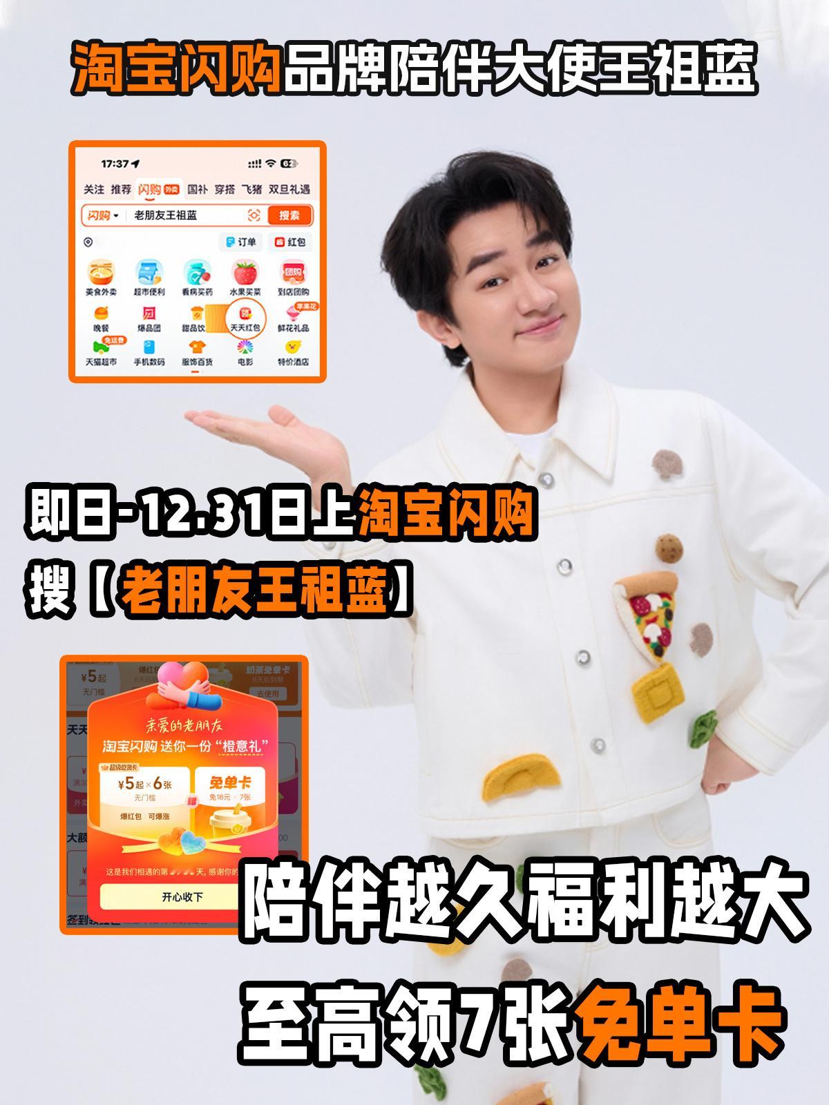 淘宝闪购老朋友王祖蓝回来了哎呀!刷微博刷到了王祖蓝变王祖“橙”,淘宝闪购请回老朋友这波回忆杀就照他说的在淘宝闪购搜了“老朋友王祖蓝”这几个字。你猜怎么着?真跳出来超多老友福利好礼!感觉像突然被淘宝闪购记住了一样,有点小感动是怎么回事……真的用了很多年了~大家也快去搜搜看你的饿龄有多久?现在起到12月31日,快来淘宝闪购🔍【老朋友王祖蓝】,注册时间越久,红包金额越大!最高可以7张免单卡!邀请好友最高可额外再得免单卡~淘宝闪购全网寻老友