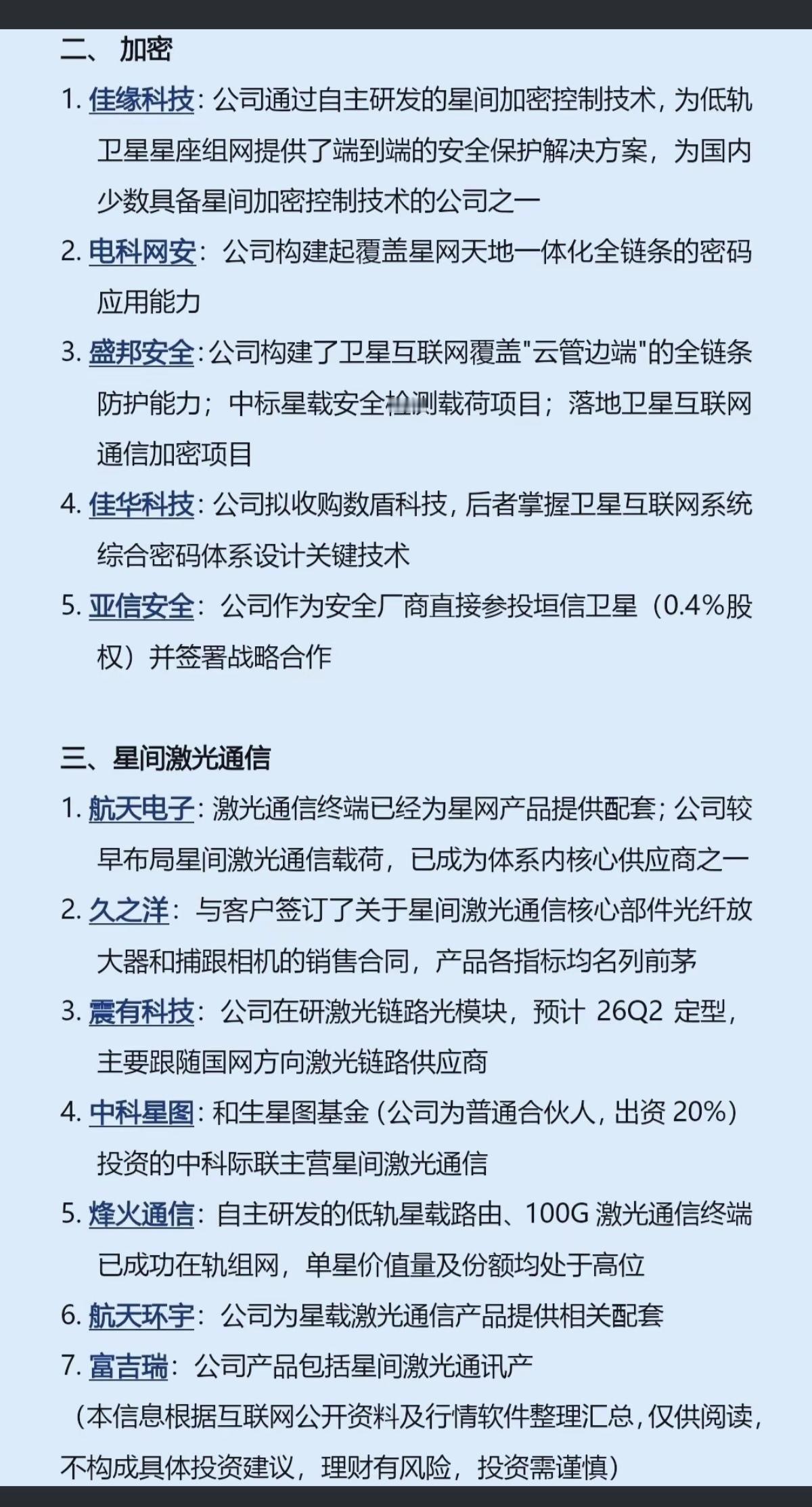 商业航天“太空安全”相关概念股! 1.抗干扰 2.加密 3.星间激光通信