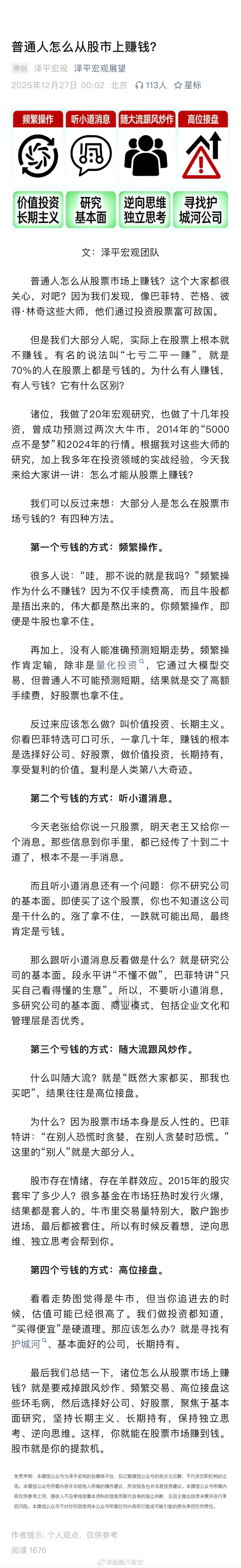 价值投资的精髓,就三句话。说多了都是骗散户的鸡汤。第一,买股票就是买公司。别盯着