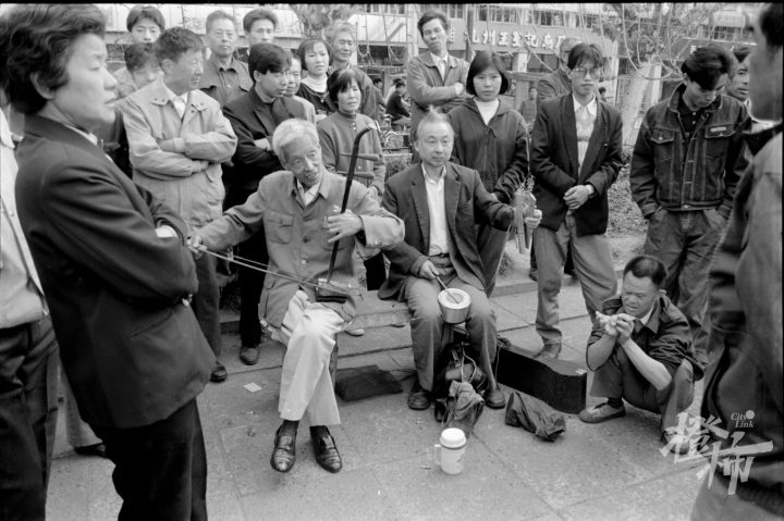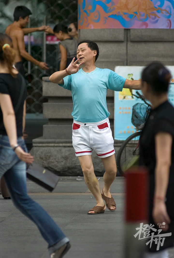 一位大哥旁若无人、忘情地在街头舞蹈,还把手头翘起了兰花指。“那些年代的人跳舞,没有搭子(舞伴),经常会这样跳,已经见惯不怪了。”