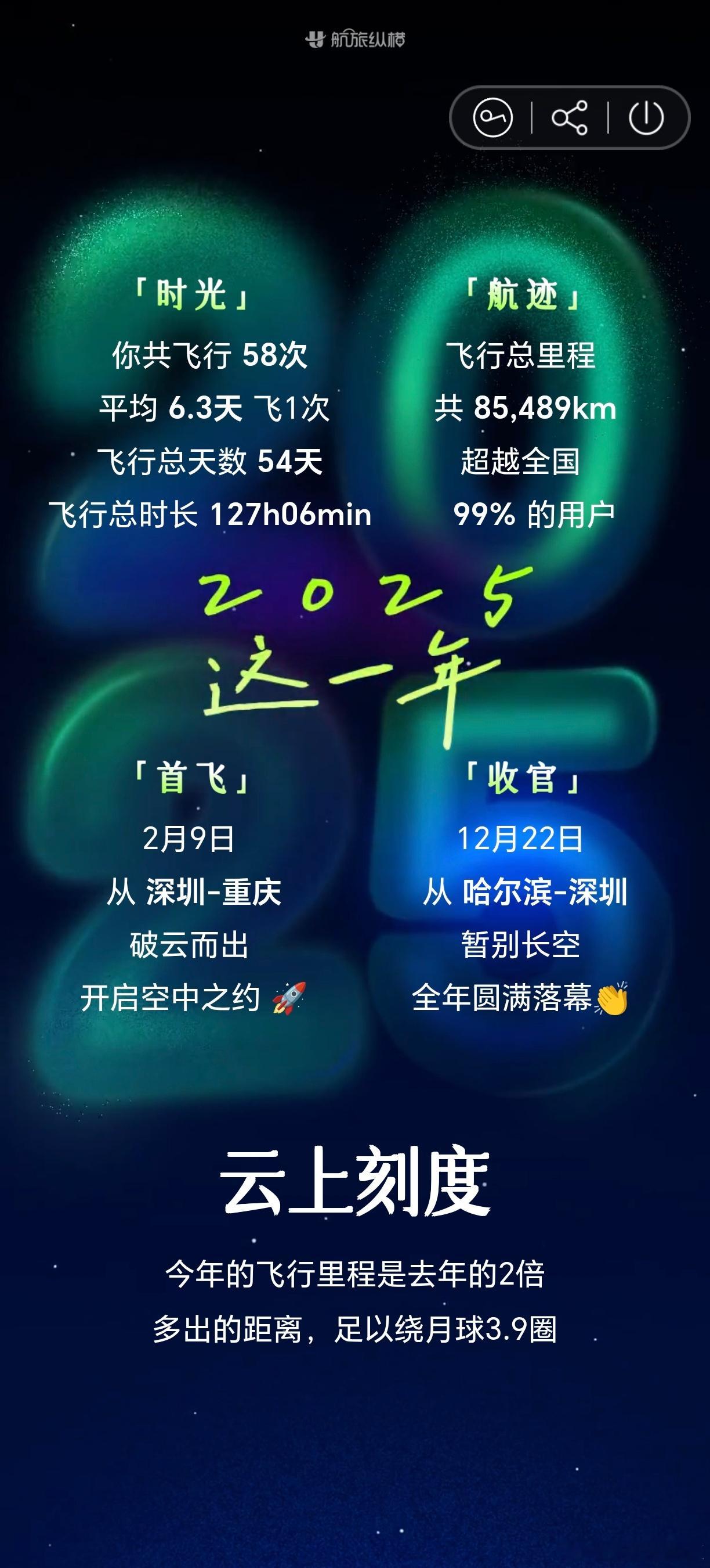 航旅纵横年度报告出炉,今年飞了八万五千多公里,解锁新飞行城市11个,比去年有进步,希望2026有机会去看看大草原。加油,2026!你好2026