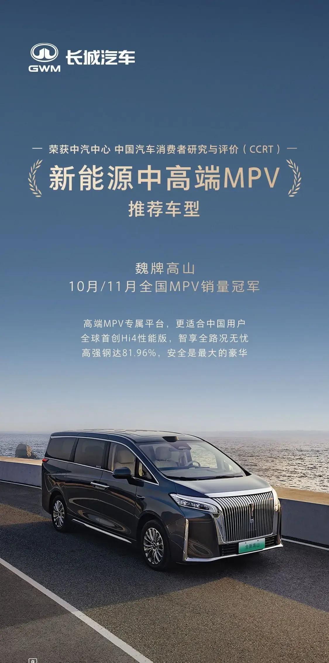 连续两月霸榜!魏牌高山为何成为MPV市场的赢家? 国产MPV的黑马来了!高山月销破万,连续两月登顶,老牌对手都栽了? 2023年,11月,魏牌高山跑出成绩单。月销破万。第二个月稳坐冠军宝座。 不靠嘴皮子。靠产品力。 智能电混四驱,全天候四驱稳定性强。省油还带劲儿。空间设计讲究,打出“人人皆C位”的体验。 智能座舱真干活。语音交互、AI场景联动、高级驾驶辅助,家用商务都能适配。拿下轩辕奖“年度十佳汽车”和权威评测的新能源中高端MPV推荐。 售后也用心。星夜服务、一小时快保、西部服务保障线,让远郊车主也不慌。 这不是偶然。这是国产品牌把短板补成优势的证明。你觉得高山还能撑多久?欢迎评论聊聊。 素材来自网络,侵权联系删除。