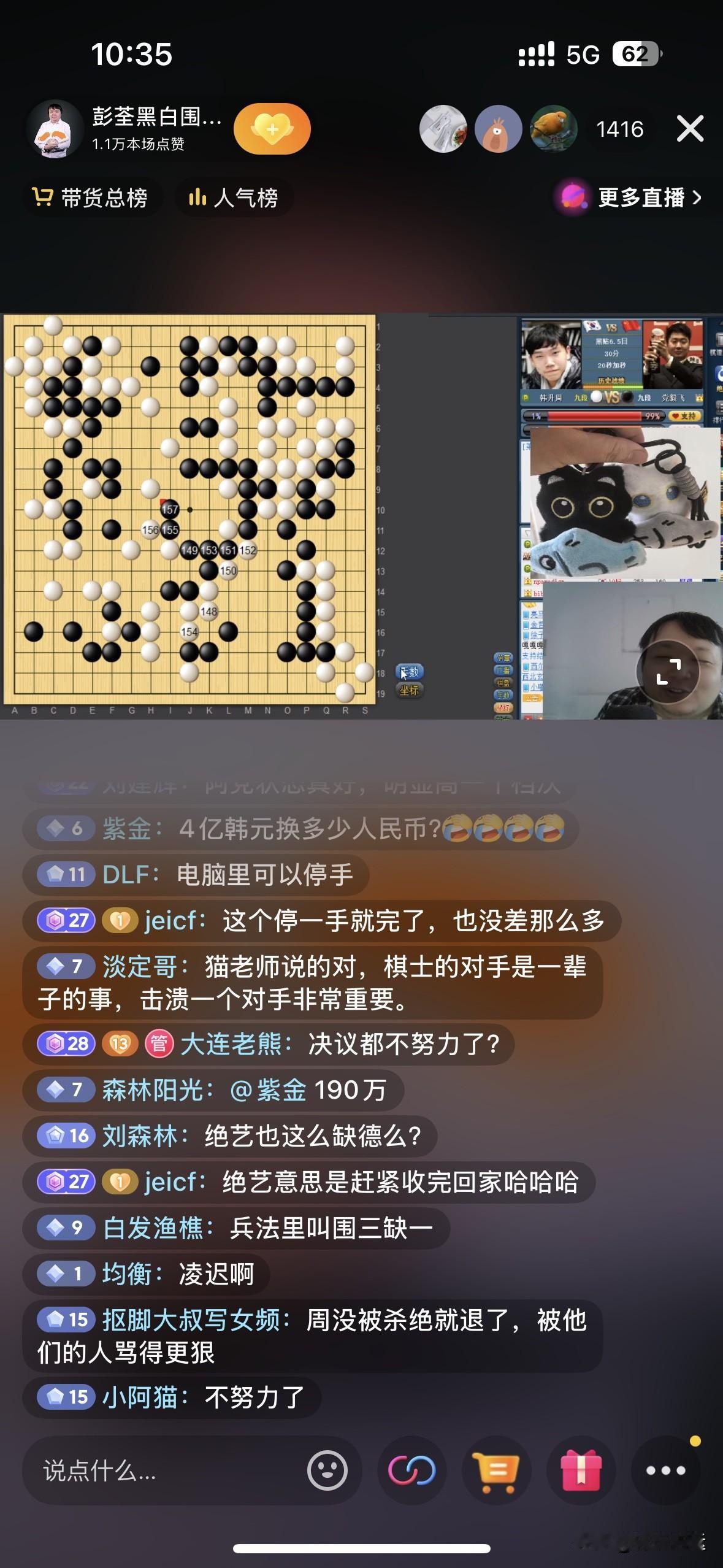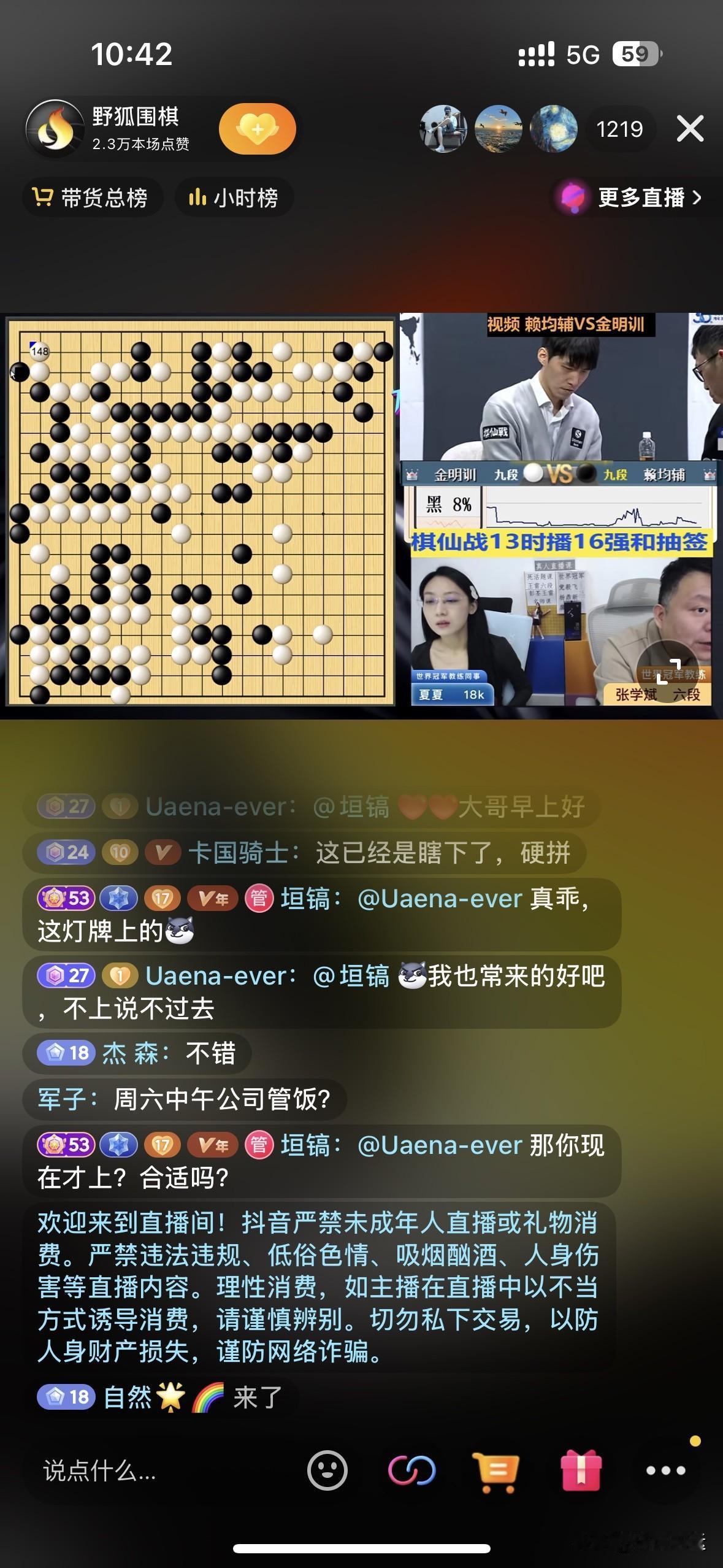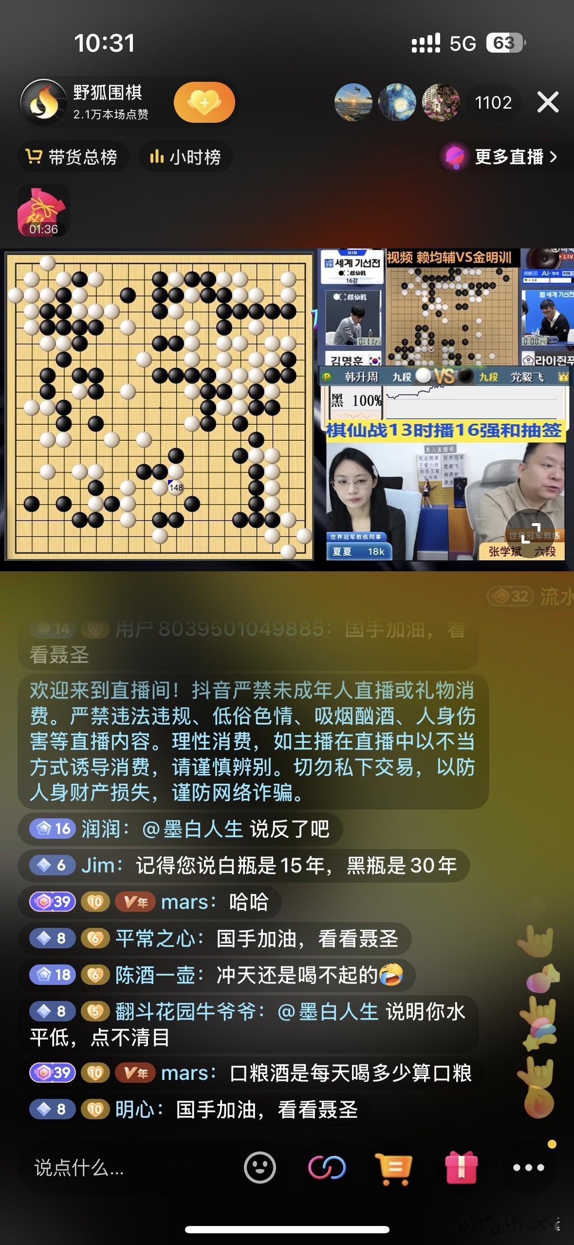 恭喜🎉🎉静静战胜韩升周晋级棋仙战八强!赖均辅不敌金明训无缘八强[呲牙][捂脸] 首届世界棋仙战1/8决赛中午两场比赛有了最新动态:在首轮比赛里,中国队9人出战5人晋级,党毅飞和赖均辅都顺利跻身16强。这次1/8决赛,党毅飞对阵韩国的韩升周,从当前情况看他晋级无虞,实力确实不容小觑。此前32强赛,他完胜日本名将村川大介,展现出强大的竞技状态。 赖均辅对阵韩国的金明训,形势就比较严峻了。棋场如战场,局势瞬息万变,后续比赛还不知会有怎样的反转,期待他们接下来的表现。 围棋界爆冷 韩国棋仙战