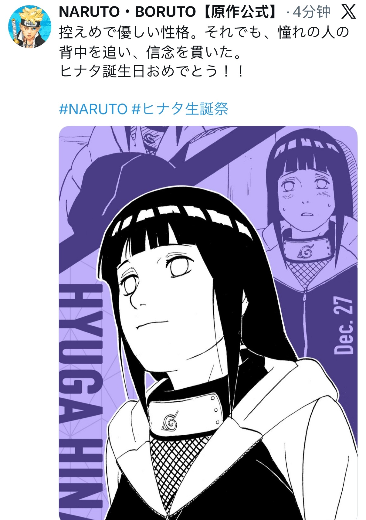 【火影忍者官方最新发布人物生日贺】性格内敛温柔 即便如此 仍追随憧憬之人的背影 坚持自己的信念雏田生日快乐!!火影忍者日向雏田