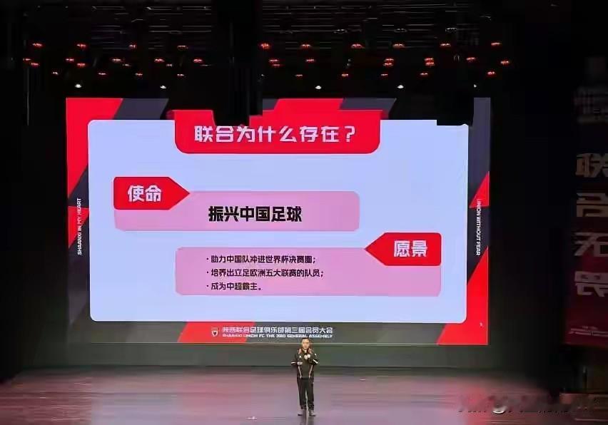 昨天,陕西联合俱乐部召开了第三届会员大会。 老板李英针对俱乐部的未来发展与规划,当场向球迷会员给出了明确指示。陕西联合俱乐部的宗旨是振兴中国足球,助力中国国家队打入决赛圈。俱乐部会努力培养更多国家队队员,还要培养出能立足欧洲五大联赛的球员,最终目标是成为中超霸主。 随后,俱乐部现场公布并解答了财政支出相关问题。陕西能有这样一支俱乐部,陕西球迷理应感到满足,不必再每年担忧准入问题,更不用害怕球队不知哪天就消失在中国足坛。陕西联合俱乐部承载着陕西球迷和陕西足球的未来。