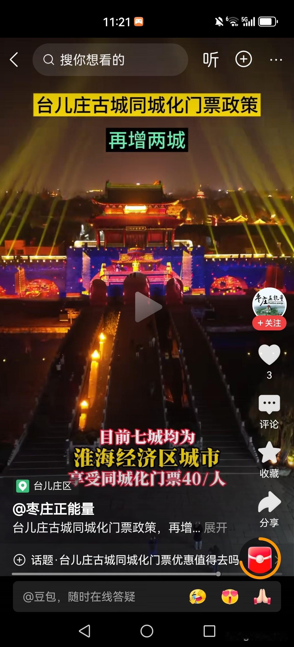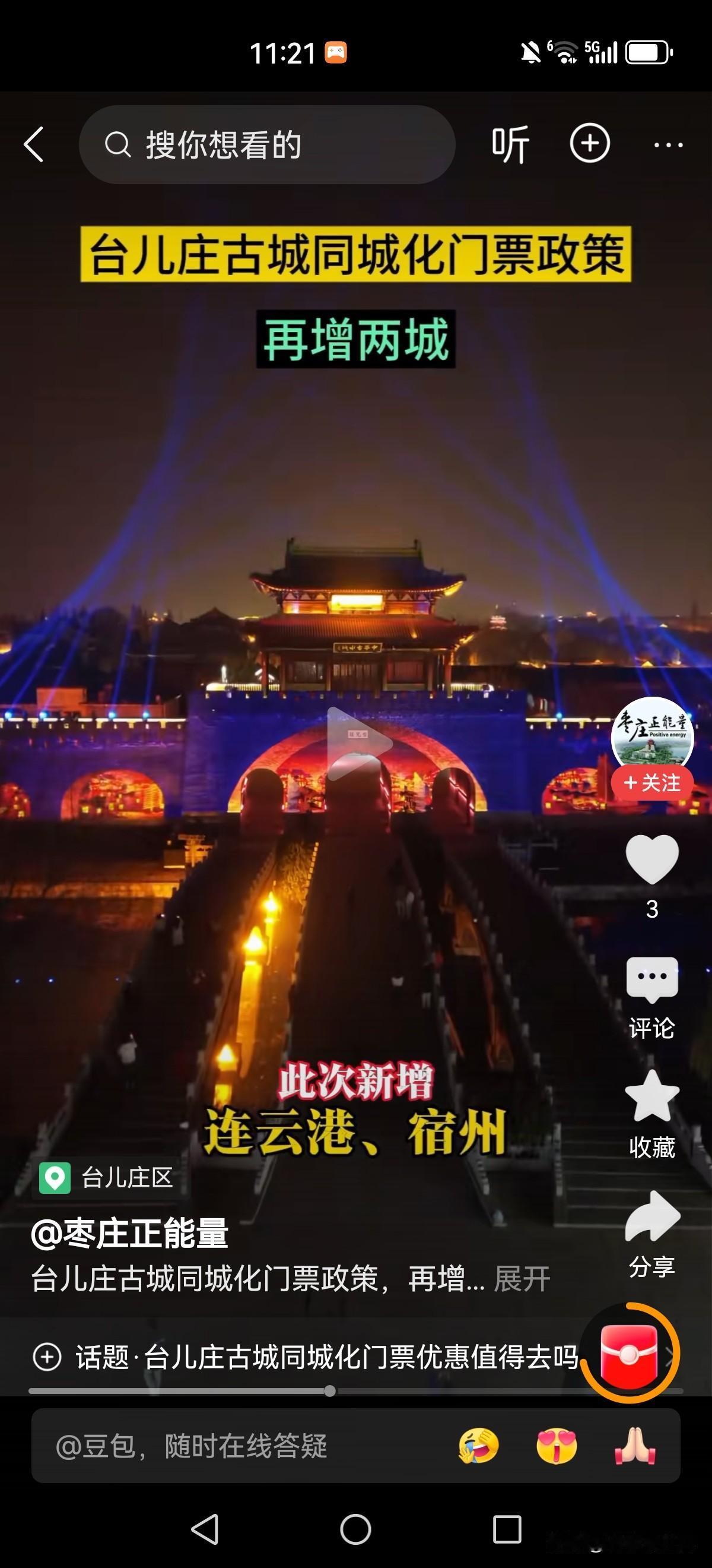 再增两城!台儿庄古城同城化待遇城市再增加连云港、宿州两个城市。连同之前享受同城化待遇的枣庄、济宁、临沂、徐州、菏泽五个城市,总计达到了7个! 同城化门票非常优惠,仅需40元!这优惠力度还是很大的。下一步应该还会进一步扩展到临近的淮海经济区其他,城市比如说日照、淮北、宿迁等。台儿庄 旅游台儿庄古城 8台儿庄古城 台儿庄旅游 来台儿庄古城 台儿庄古城夕阳 仙境台儿庄古城