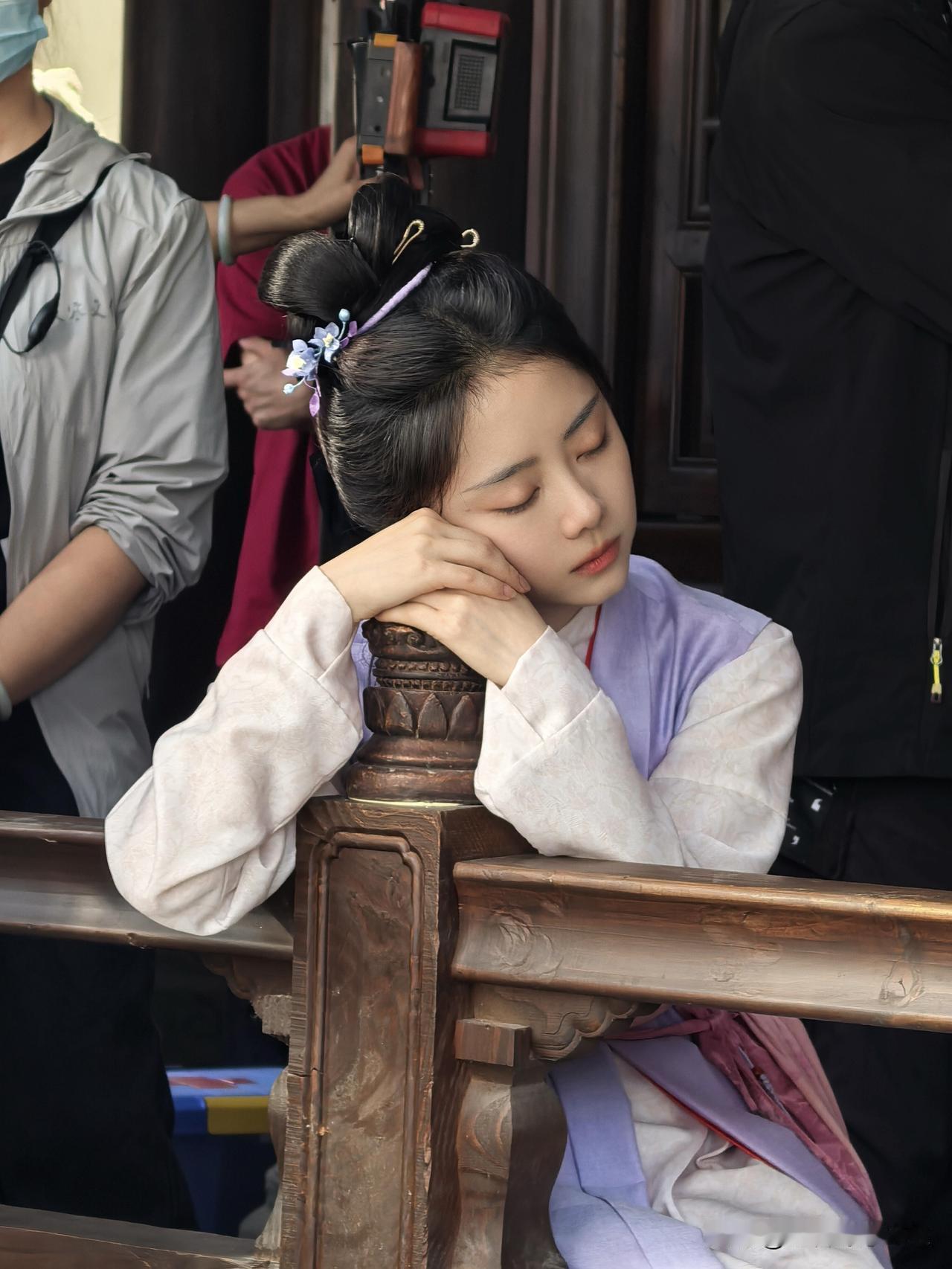 午后的阳光洒在沉思的谭松韵身上,古风发饰衬得她格外温柔,这组造型我给满分!谭松韵