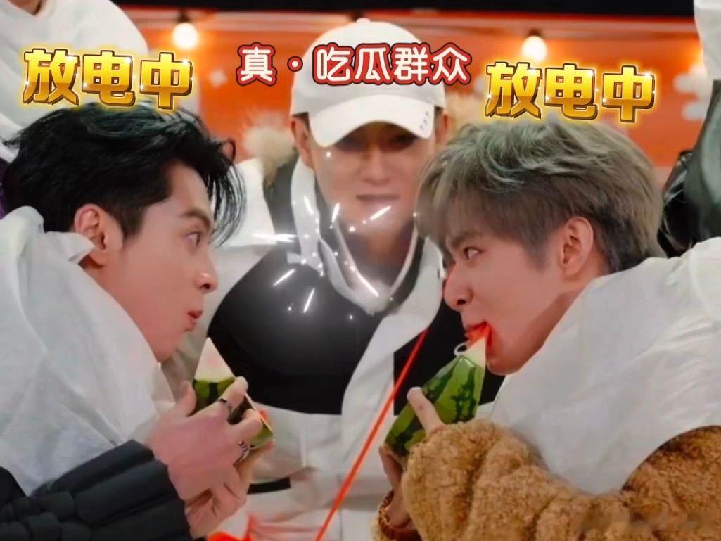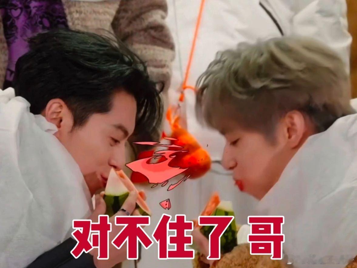 谁来数一数这是王鹤棣贡献的第几个西瓜名场面了? 玩面对面吃西瓜憋笑游戏,王鹤棣和刘耀文刚坐下就比腿力暗自较劲,西瓜一端上来两人全身心投入比赛,抱着必赢的决心,结果刘耀文面对王鹤棣还是没憋住,把嘴里的汁全喷哥哥脸上,遗憾“落败”,再看一边的王鹤棣好像赢了也没有那么开心,看似赢了比赛,实则是直接受惩罚了!