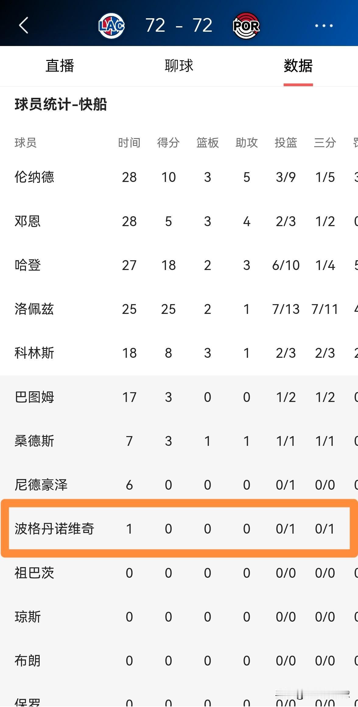 下面是一条关于快船神射手博格丹诺维奇的坏消息!在今天快船客场挑战开拓者的比赛中,目前双方的比赛已经进行到了第三节,就在这时快船官方宣布了一条坏消息,博格丹诺维奇因为左髋关节紧绷而提前退赛。 值得一提的是,在博格丹诺维奇提前退赛之前,他替补出战1分钟,投篮1中0怒砍0分。随着博格丹诺维奇的提前退赛,此役快船的人手将会更加不足。