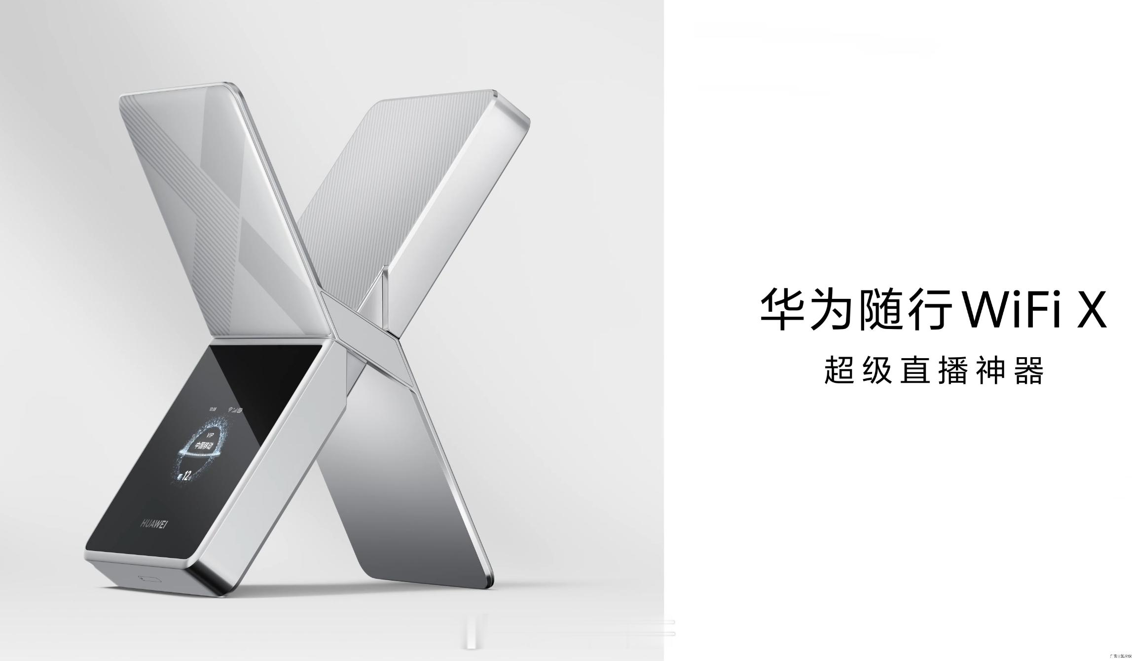 适合主播们的直播工具,华为官宣了一款新产品超级直播神器:华为随行 WiFi X,一个X可以折叠的造型,折叠方便携带,展开可以立起来。